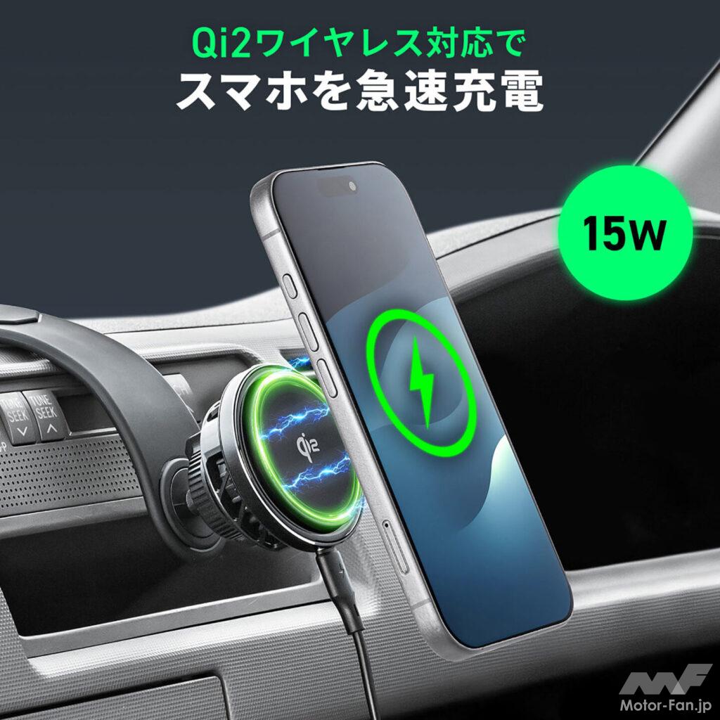 最大の特徴はQi2規格に対応し、最大15Wの高出力ワイヤレス充電を可能にしていること。従来のQi規格に比べて充電スピードと安定性が大幅に高まっているという。