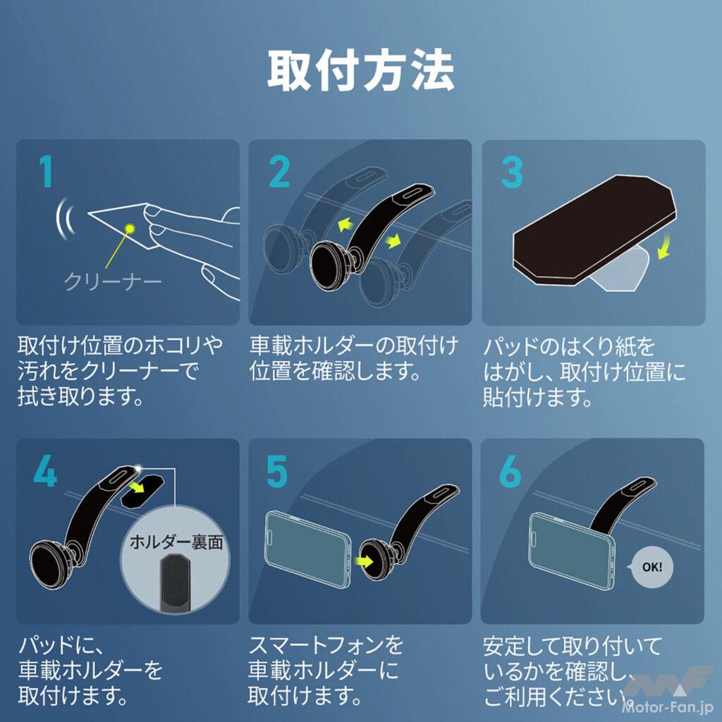 車両への設置は両面テープ付き面ファスナーで行なえ、使わないときには簡単に外せる。電源は付属のUSBタイプCケーブルを介して取得する。