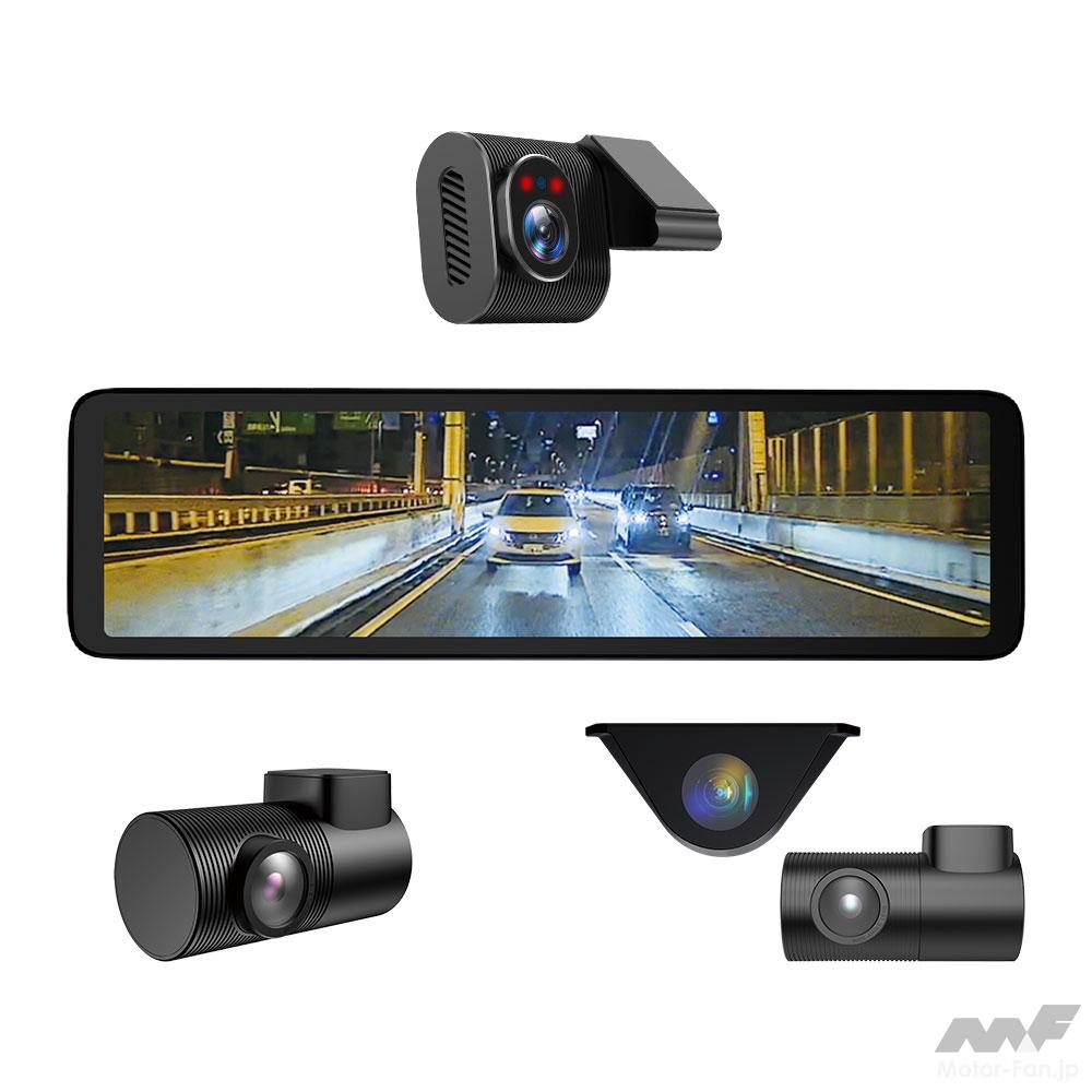 MAXWINの『MDR-C015A/B』は、ドライブレコーダーとデジタルルームミラーの2つの機能を併せ持つモデル。ルームミラー型の本体には10.88インチのIPS液晶ディスプレイを搭載し、静電式タッチパネルによる操作も行える。純正ルームミラーに重ねて付属のゴムバンドで固定するため幅広い車種に適合する。