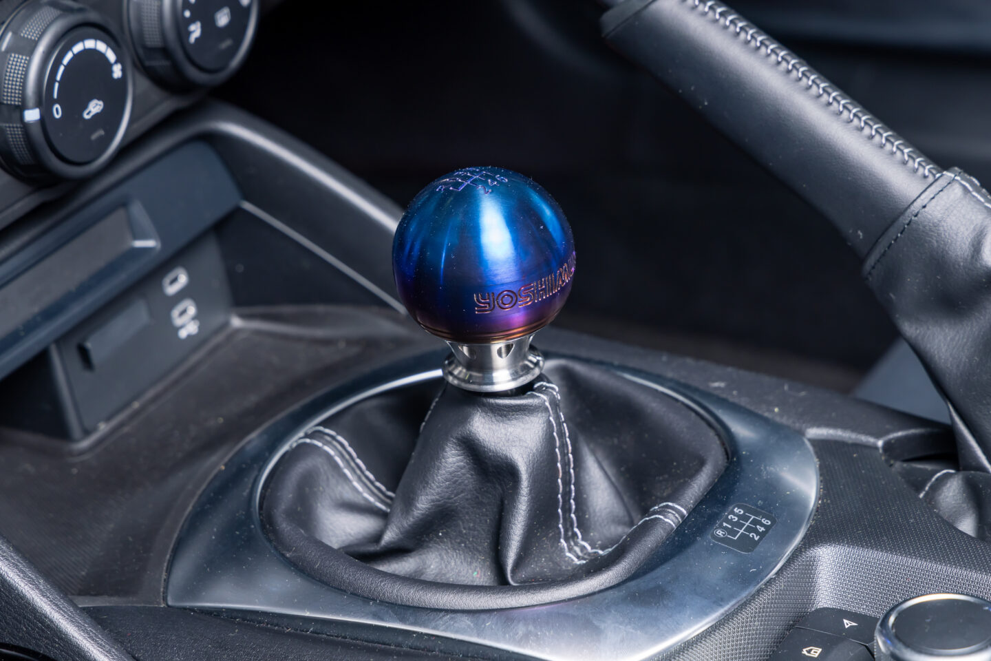 インテリアでは、イベント直前に完成したヨシムラ製チタンシフトノブに注目したい。シンプルな球形デザインながら、一般的なグラデーションではなく、ブルーが強調された焼き入れ処理が新鮮な印象を与える。今後、市販化される可能性もあり、ファンにとっては見逃せない存在だ。
