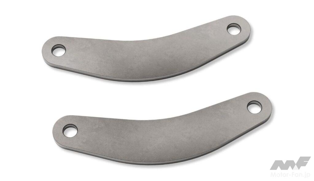 - メーカー希望小売価格19,800円消費税10%含むのローダウンリンクは、リアサスペンションのリンク長を変更することで、シート高を約15mmダウンさせている。これにより停車時の足つき向上に貢献するが、装着によりサスペンションの特性が変化する点には注意が必要だ。