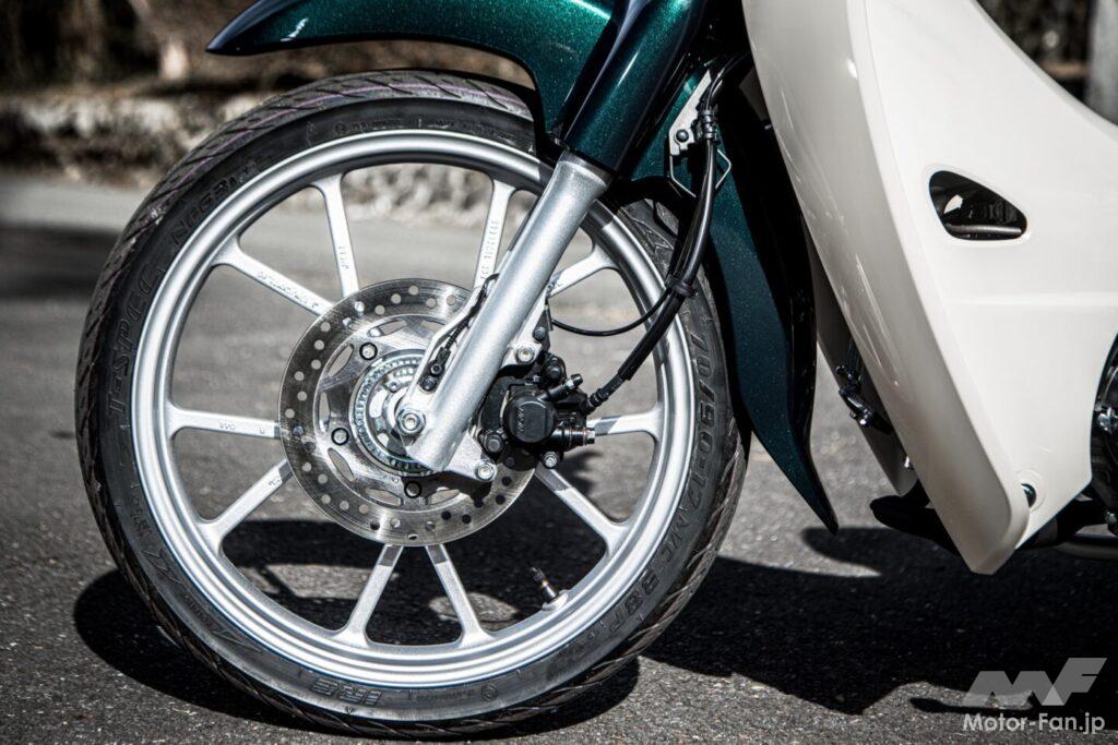 ハンドリングについては、110も110 Liteも何ら変わらない。101kgという車重も、標準装着タイヤも共通であり、軽い入力でスイッと曲がれる扱いやすさと旋回力の高さはスーパーカブならではだ。