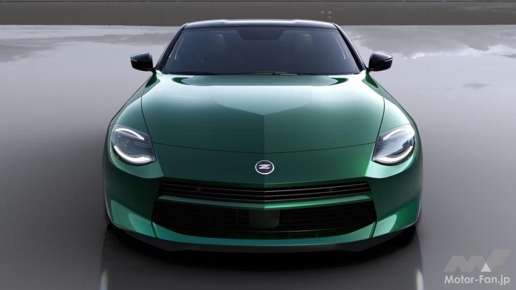 そして、登場から4年を経てのマイナーチェンジが行われた。最も顕著な進化は、改良されたフロントフェイシアだろう。以前のデザインよりも彫刻的な造形となり、中央に水平のクロスバーが配置されている。この形状は、1970年代に日本で販売されていたフェアレディ240ZGの「Gノーズ」からインスピレーションを得たものだ。改良されたノーズとダークグリーンのボディカラーは、アグレッシブなスタイリングに高級感と成熟度を加えている。