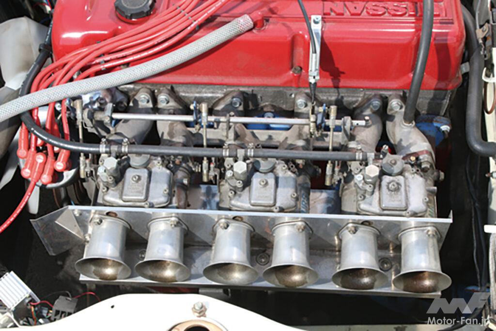 エンジンはL28に載せ替え、ボアを拡大した3ℓ仕様を搭載する。2層ラジエーターと18段オイルクーラーで冷却系も強化済み。 キャブはソレックス44φを3連装。アルミの遮熱板の下にはトラストのスチール製48Φタコ足がセットされる。