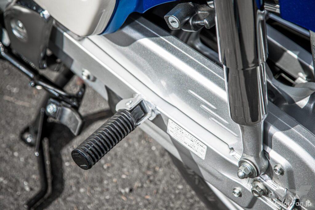 スーパーカブは、1958年に発売された初代C100から独自のトランスミッションを採用しており、自動遠心クラッチとシーソー式チェンジペダルに最初は戸惑うかもしれない。いわゆる逆シフトパターンであり、停止時のみトップからニュートラルにチェンジできるロータリー式でもある。クラッチレバーによる操作が必要ない(ゆえにAT限定免許でも乗れる)ので、慣れてさえしまえばそのイージーさを享受できる。それに、粘り強いエンジン特性ゆえに各ギヤの守備範囲が広く、シフトチェンジの回数が少ない点もスーパーカブ110の美点と言えるだろう。