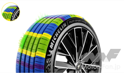 ミシュランを指名するユーザーの多くが環境意識がより高いーー。こうした分析のもと、「パイロットスポーツ5エナジー」、「プライマシー5エナジー」が新たに発売された。ここでは、まず「パイロットスポーツ5エナジー」の見どころをピックアップする。