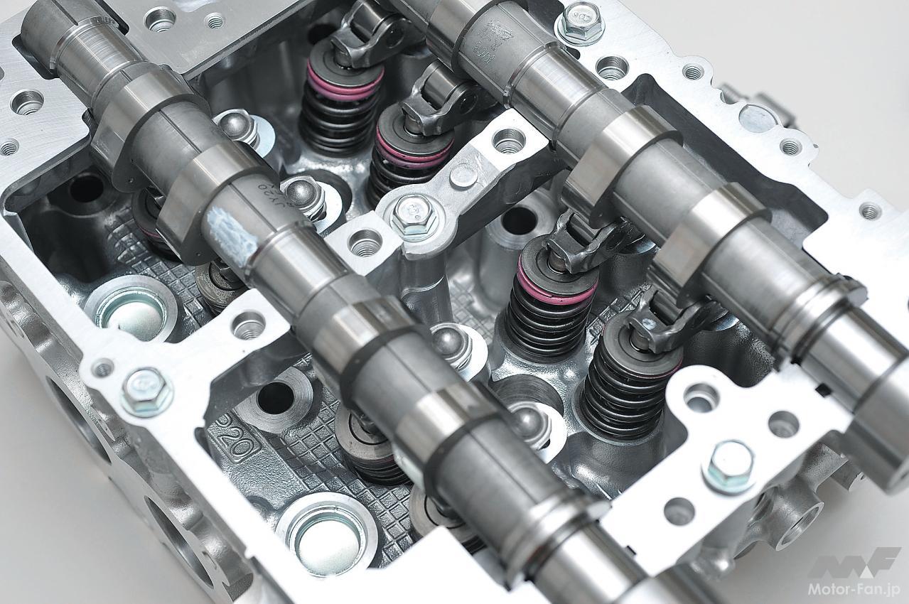 こうしたバルブ/燃焼室まわりの要件を満たすため、カムシャフトは細く、軽くする必要があった。選択肢としてはパイプ材が最適だと判断され、EJ型用のパイプ製カムシャフトよりもさらに「攻め」た設計になっている。地味な部品だが、確実に進歩しているのである。