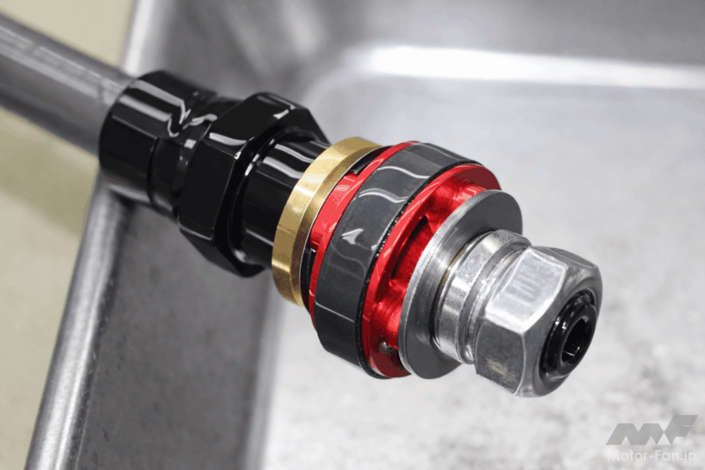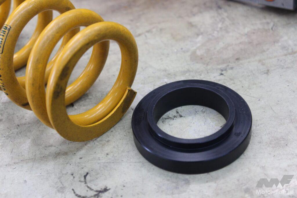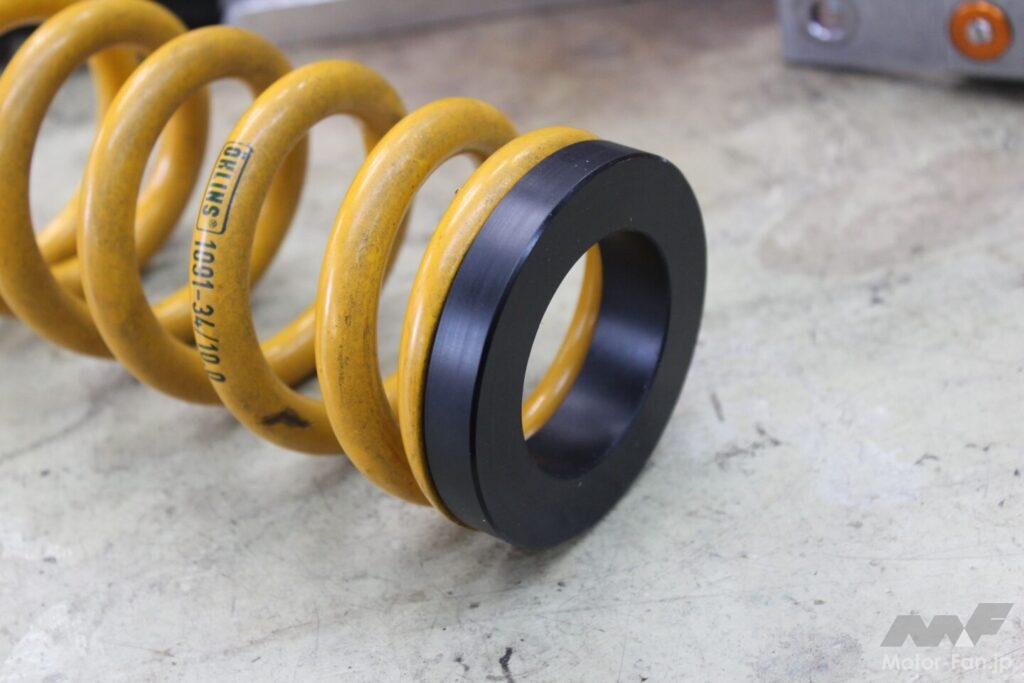 もっとも、オザワR&Dが在庫しているスプリングは大半がオーリンズ製で、ノーマルショックのスプリングとは各部の寸法が異なるのだが、同店はその問題にカラーのワンオフ製作で対応。