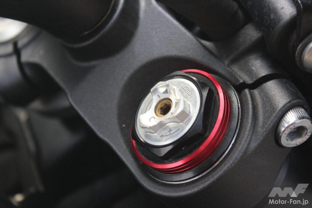 結果は115N/mmだったので、とりあえず95N/mmを装着して試してみたところ、なんと一発目でまさかの好感触‼ スロットルやブレーキの操作で発生するピッチングがナチュラルになり、乗り心地も良好になった。