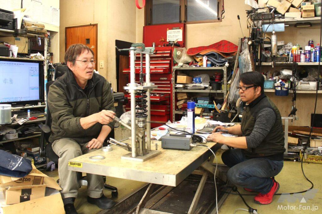 と言うのも、まず同店はノーマルショックのスプリングレートを計測できる態勢を整えているし、テスト用としてさまざまなレートのスプリングを準備しているのだ。