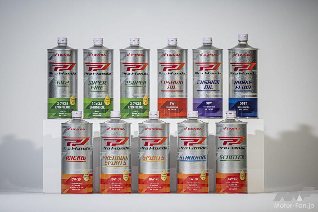 1950年代から2輪用のホンダ純正オイルとして親しまれてきたULTRAシリーズが、この4月からPro Hondaブランドに一新される。1958年発売の初代スーパーカブC100の取扱説明書にも指定オイルとして“ホンダ ウルトラ オイル”が最も適していると明記されている。当初はシングルグレードのみであったが、1960年代にはマルチグレードが追加。T360やS500などの4輪車にも指定オイルとして推奨され、高性能なウルトラSやウルトラスーパーSが発売となっている。現在のラインナップは4サイクルエンジン用が「ULTRA G1」、「ULTRA G2」、「ULTRA G3」、「ULTRA G4」、「ULTRA E1」、「ULTRA S9」の6タイプ、2サイクルエンジン用は「ULTRA 2 SUPER」、「ULTRA SUPER FINE」、「ULTRA GR2」の3タイプとなっているが、新しい純正オイルのラインナップは4サイクルエンジン用が「Pro Honda STANDARD」、「Pro Honda SPORTS」、「Pro Honda PREMIUM SPORTS」、「Pro Honda RACING」、「Pro Honda SCOOTER」、2サイクルエンジン用は「Pro Honda 2 SUPER」、「Pro Honda SUPER FINE」、「Pro Honda GR2」となった。スクーター用の高性能オイルだった「S9」はラインナップからなくなっている。また、エンジンオイルだけでなくフロントフォークなどに使用する「CUSHION OIL」2種と「BRAKE FLUID」もラインナップされ、統一したボトルデザインでわかりやすくなった。4月から順次発売が開始される。