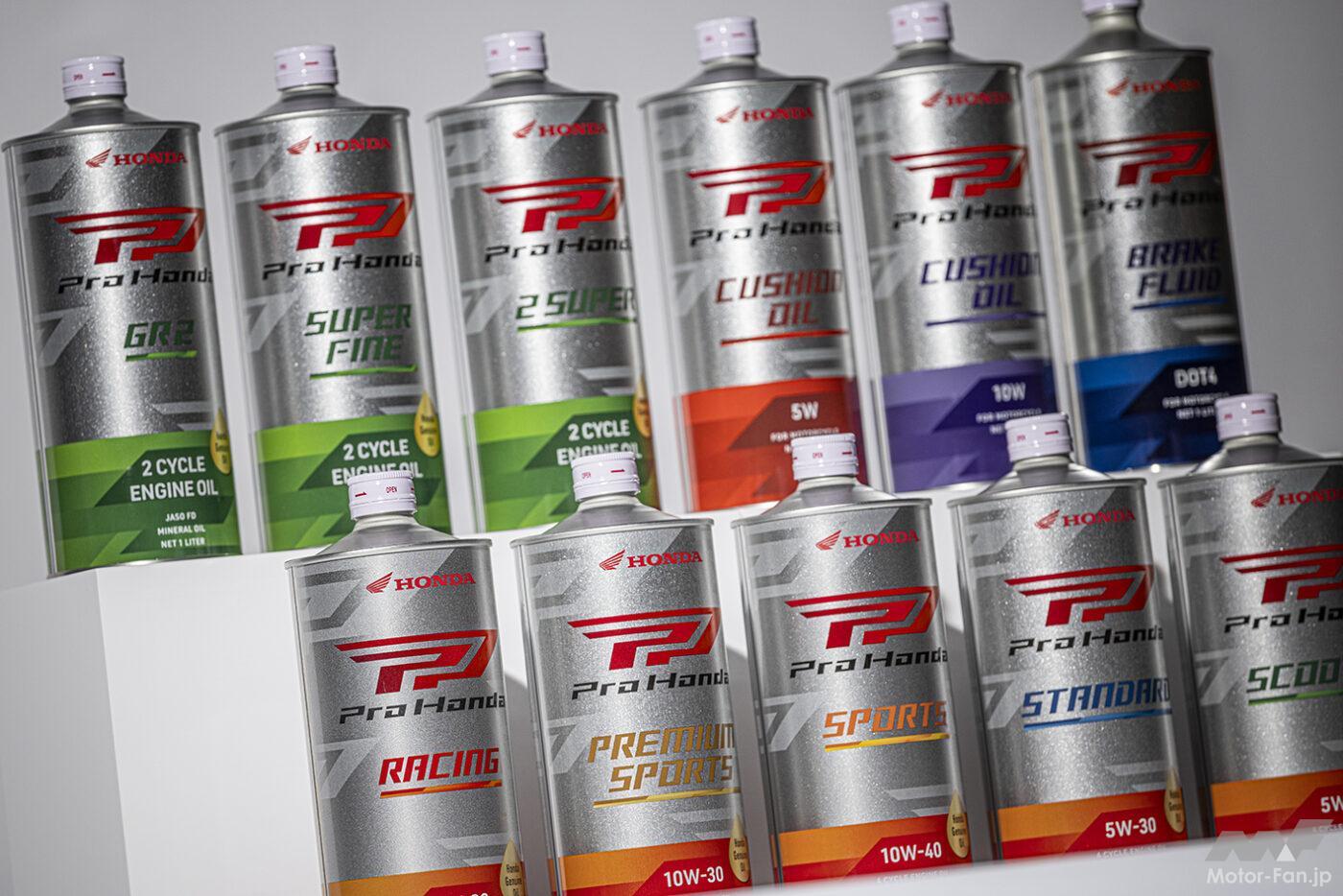 1950年代から2輪用のホンダ純正オイルとして親しまれてきたULTRAシリーズが、この4月からPro Hondaブランドに一新される。1958年発売の初代スーパーカブC100の取扱説明書にも指定オイルとして“ホンダ ウルトラ オイル”が最も適していると明記されている。当初はシングルグレードのみであったが、1960年代にはマルチグレードが追加。T360やS500などの4輪車にも指定オイルとして推奨され、高性能なウルトラSやウルトラスーパーSが発売となっている。現在のラインナップは4サイクルエンジン用が「ULTRA G1」、「ULTRA G2」、「ULTRA G3」、「ULTRA G4」、「ULTRA E1」、「ULTRA S9」の6タイプ、2サイクルエンジン用は「ULTRA 2 SUPER」、「ULTRA SUPER FINE」、「ULTRA GR2」の3タイプとなっているが、新しい純正オイルのラインナップは4サイクルエンジン用が「Pro Honda STANDARD」、「Pro Honda SPORTS」、「Pro Honda PREMIUM SPORTS」、「Pro Honda RACING」、「Pro Honda SCOOTER」、2サイクルエンジン用は「Pro Honda 2 SUPER」、「Pro Honda SUPER FINE」、「Pro Honda GR2」となった。スクーター用の高性能オイルだった「S9」はラインナップからなくなっている。また、エンジンオイルだけでなくフロントフォークなどに使用する「CUSHION OIL」2種と「BRAKE FLUID」もラインナップされ、統一したボトルデザインでわかりやすくなった。4月から順次発売が開始される。