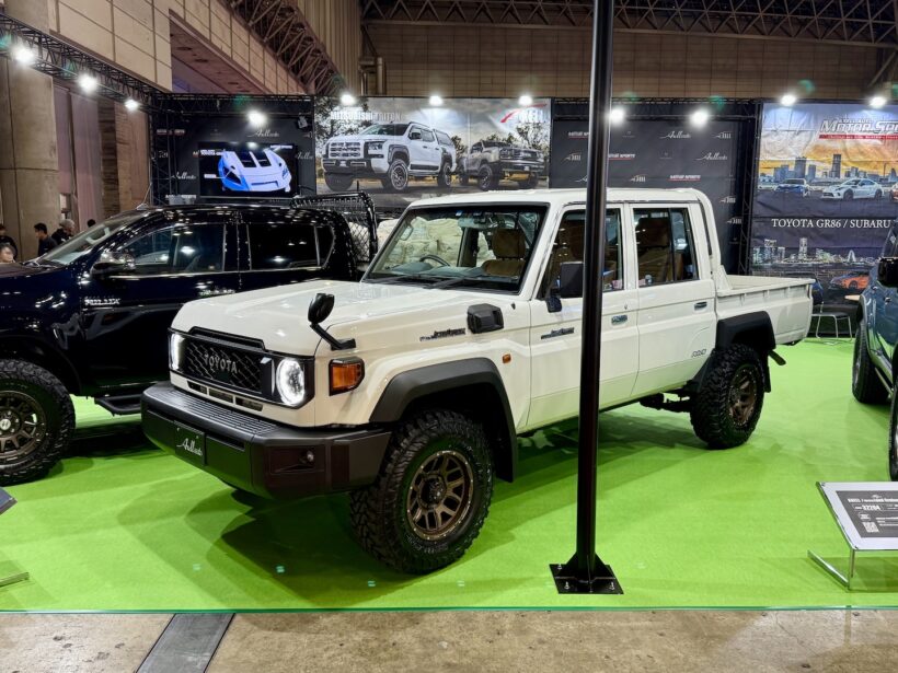 カーライフ 待望の追加モデルか、それとも…!? ランドクルーザー70のピックアップ、その正体は?【写真・6枚目】 2023年11月に発売が開始されたランドクルーザー70(GDJ76W型)。丸型ヘッドライトやディーゼルエンジンの採用も相まって、高い人気を博している。 2014年に期間限定で販売されたランドクルーザー70。バンのほか、ダブルキャブのピックアップも設定された。エンジンは4.0L V6ガソリンエンジンを搭載。 東京オートサロン2026のアクセルオートコーポレーションのブースに展示されていたランドクルーザー70のピックアップ。 アドブルー補充口のフタ。 この画像の記事を読む