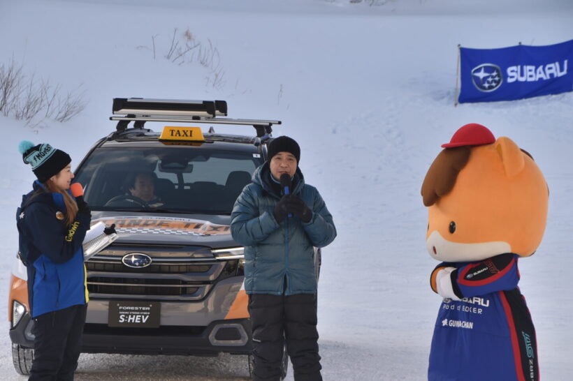 イベント 今年の『スバルゲレンデタクシー』はスバルの地元・群馬県で初開催!ぐんまちゃん&中山秀征も来場!!【写真・55枚目】 ゲレンデタクシーのゲスト、中山秀征氏とぐんまちゃん。 2026年のゲレンデタクシーの会場となったのはパルコール嬬恋リゾート。 渋川地区観光物産振興協会ブース。 渋川地区観光物産振興協会では『頭文字D』のコラボグッズを販売。 渋川地区観光物産振興協会では『頭文字D』のコラボグッズを販売。 会場となったパルコール嬬恋リゾートからは長野県にまたがる壮大な浅間山を一望。 2026年のゲレンデタクシー。 ゲストの中山秀征氏とぐんまちゃん。ぐんまをアピールする者同士、息もぴったり。ぐんまちゃんはスバルチームレーシングスーツで登場して会場を盛り上げた。 中山秀征氏は、新井選手のドライブするフォレスターでゲレンデを下って登場。スバルAWDの走破性と新井選手のテクニックを語った。 女子スキージャンプの髙梨沙羅選手とSAJの原田雅彦会長がデザインしたラッピングフォレスターも登場。 ゲレンデタクシーの発着場に並ぶフォレスターとクロストレック。 ゲレンデを駆け上がるフォレスターの後方には、順番待ちの長い列が見える。 クロストレックをドライブした川名 賢選手。川名選手は2025年に日本人コンビでフランスラリー選手権に参戦している。 ゲレンデタクシー発着エリアの様子。 ゲレンデタクシーのフォせスター。 デモラン会場に展示されたWRX STI Sport♯と、新井選手のWRXラリーカー。どちらも『東京オートサロン2026』に展示された。 新井選手(右)と鎌田選手(左)。トークでも息のあったところを見せる。 新井選手のデモラン。ハイスピードなラリー向けのセッティングでは、デモラン会場は狭いようで苦しい一面も見せたが、新井選手のテクニックでド派手な走りを披露。 鎌田選手のドライブはMT車らしく自在な走りを見せた。待機中の新井選手車に 接近して、新井選手に「あんまり俺のクルマに近づくなよ」と言わしめるお茶目な一面も。 ゲレンデタクシーのクロストレック。 スバルギアブースではアパレルが在庫限りの半額セール。 エフエムNack5の冬のキャンペーン「Winter Aloha」のオフィシャルカーが初日限定で登場。 キャンペーンステッカーを配布していた。 THULEブースではスキー・スノーボードキャリアとルーフボックスを展示。 ブリヂストンブースでは様々な催しが実施されていた。発売されたばかりのスタッドレスタイヤの新製品「ブリザックWZ-1」も展示。 SUBARU CAFEの様子。 アンケートに回答するとステッカーがもらえる。 長距離運転のお供、ロッテ・ブラックブラックガムのプレゼント。 360度アクションカメラが当たるInsta360ブース。 長尾選手はまだ雪が深い準備日に登りでスタックした、と新井選手・談。 ゲレンデタクシーのコース前半の登りは斜度15度ほどだとか。 デモラン会場から浅間山を望む。 新井選手のWRXは全日本ラリー選手権参戦車両。 WRX STI Sport♯ エフエムNack5のウィンターアロハ号。埼玉スバルの提供で、キャンペーンで視聴者にこの実車がプレゼントされるとか。 山本シンヤ氏がドライブするフォレスター。 ゲレンデタクシーの受付。 THULEのスキー・スノーボードキャリア。ゲレンデタクシー仕様車に装着されている。 ルーフボックスも展示。 THULEブースではステッカープレゼントも実施。 ブリヂストンブースに展示された氷のタイヤオブジェ。 ゲレンデタクシー仕様のクロストレックを展示。 ゲレンデタクシーのクロストレック。 下りはコース幅も広く、ドリフト走行を披露することも。 ゲレンデタクシー発着場に続く乗車待ちの列。 WRX STI Sport♯のデモラン。 WRX STI Sport♯のデモラン。 WRX STI Sport♯のデモラン。 新井選手のデモラン。観客に雪を浴びせるのはファンサービスだ。 新井選手のデモラン。 ぐんまちゃんと中山秀征氏のファンサービス。観客と「シューイチ」をやる場面も。 ゲレンデタクシーは7台が発着。 2025年は往復コースだったが、2026年は周回コースで距離も長くコースも広くなっていた。 ゲレンデタクシーの会場。 下はコース幅も広く羨望も抜群。 ゲレンデタクシーのフォレスター。 ゲレンデタクシーのフォレスター。 ゲレンデタクシーのフォレスター。 ゲレンデタクシーのフォレスター。 ゲレンデタクシーのフォレスター。 ゲレンデタクシーのクロストレック。 プロドライバーによる迫力ある走り。 フォトセッションの様子。 この画像の記事を読む
