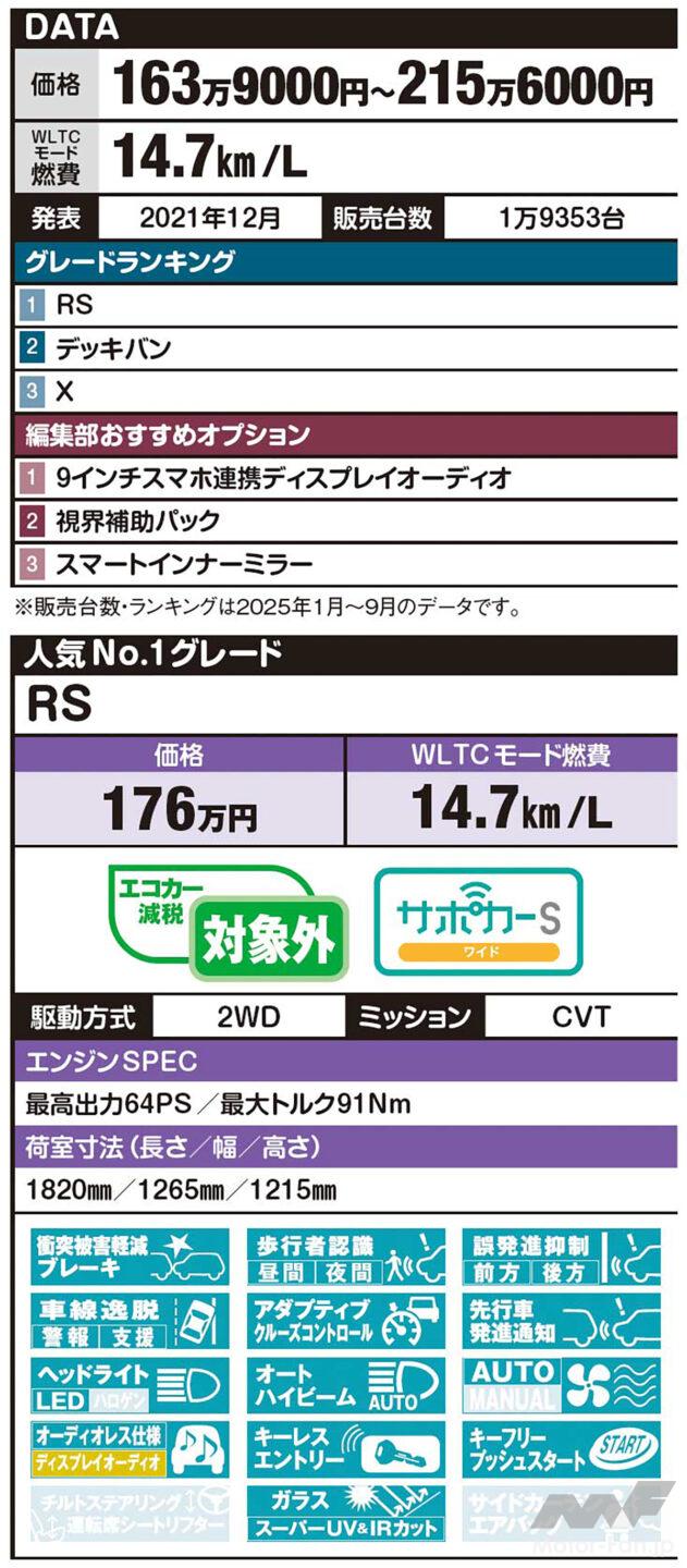 新車レビュー 「全車商用化なのにお洒落なルックス&優秀装備と走りのアトレー」いま狙いめの軽バン&ワンボックス選び【写真・4枚目】 【RS】 『シートアレンジで広々空間を実現』 後席を足下に納める水平格納式リアシートの採用により、車中泊にも使えるフラットなスペースを生み出すことができる。ディーラーオプションのラゲッジボード(2枚セット)の組み合わせで、様々な用途に合わせたアレンジも可能になる。 ※車両価格と燃費は最低値と最高値、発表は現行車がデビューした時期、販売台数とランキングは2025年1月から9月の統計データ。グレードやオプションランキング内の%は、各メーカーに実施したアンケート調査に基づくデータです(一部編集部おすすめもあり)。衝突被害軽減ブレーキ搭載車は「サポカー」対応になるが、サポカーS対応の場合は、上記の機能がプラスされることで「サポカーSベーシック」「サポカーSベーシック+」「サポカーSワイド」とグレードアップする。 ●マークが緑色→[標準装備]/▲マークが黄色→[オプション設定あり]/◾️マークが薄い→[設定なし] この画像の記事を読む