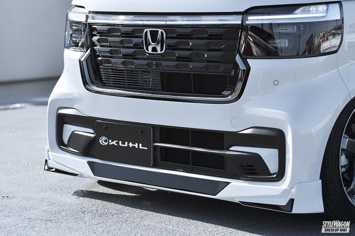 60プリウス用アイテムからスタートした『クールスタイルキット』シリーズ。ノーマル車高、ノーマルホイールでも似合うエアロパーツがコンセプト。ハーフタイプのABS製エアロ(しかも自社製造!)で、シンプルでいてスポーティなテイストを持つのが特徴だ。そんな『クールスタイルキット』の第2弾として発表されたのが、このNボックスカスタムである。