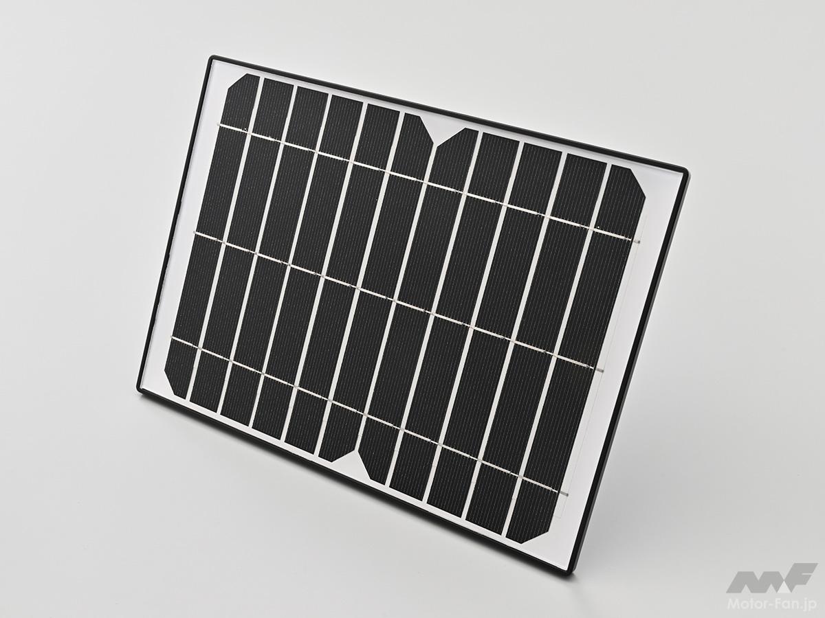6Wのソーラーパネルと12,000mAhの大容量バッテリーを搭載し、コンセントの設置など電源工事なしで稼働OK。太陽光が当たらない場所への設置は、付属の5mケーブルを使用できる。