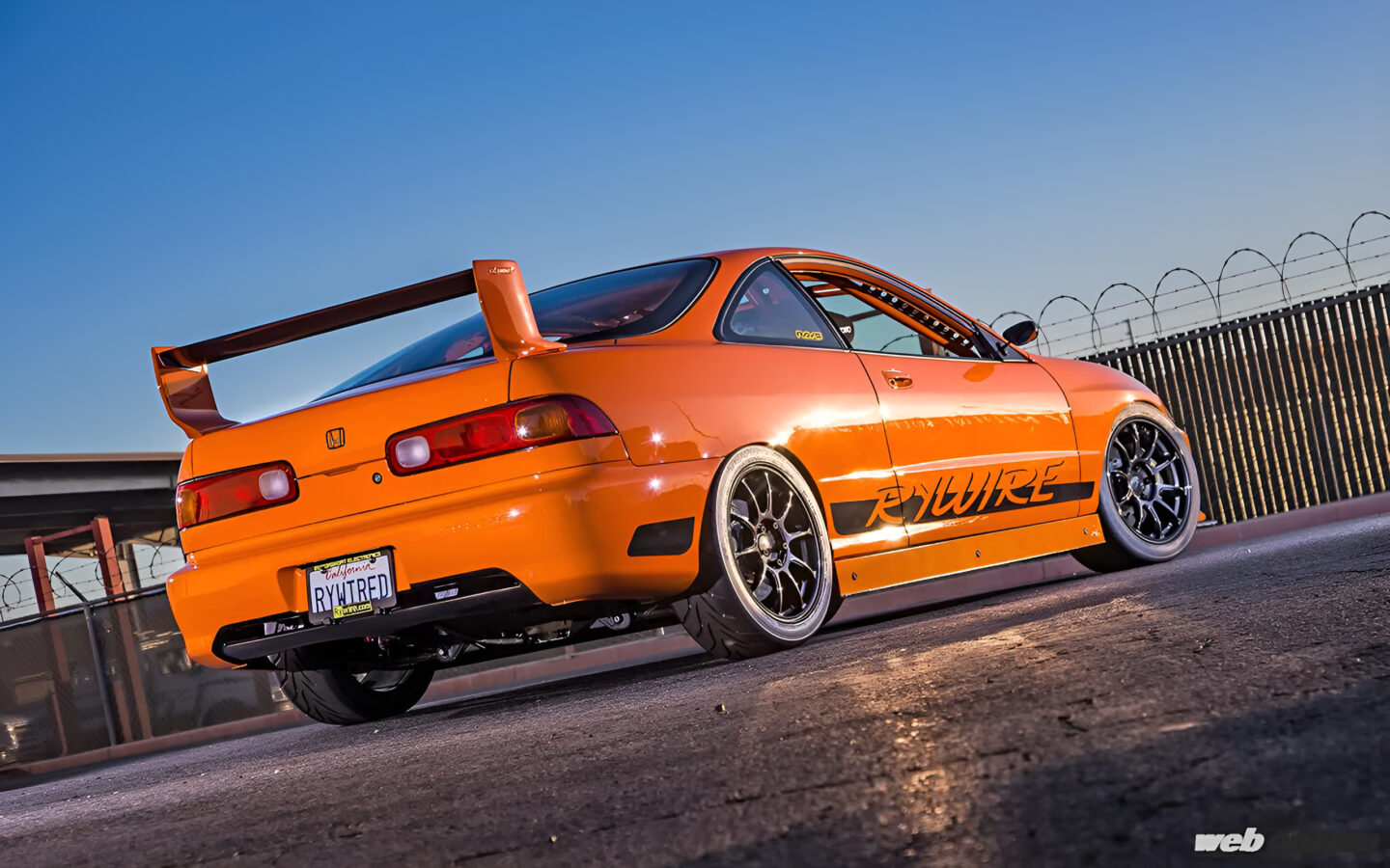 そんなライアンにとって大きな転機となったのが、今回紹介するDC2インテグラタイプRだ。アメリカでは珍しい日本仕様の右ハンドル車を手に入れたライアンは、それを自身の集大成として『レースレディ(競技仕様)なハイスペックチューンのショーケース』と位置付けてメイク。これぞと目をつけたハイクオリティ・パーツを惜しげもなく投入し、カラーリングには当時彼のドリームカーであったポルシェ911GT3 RSをモチーフに採り入れた。