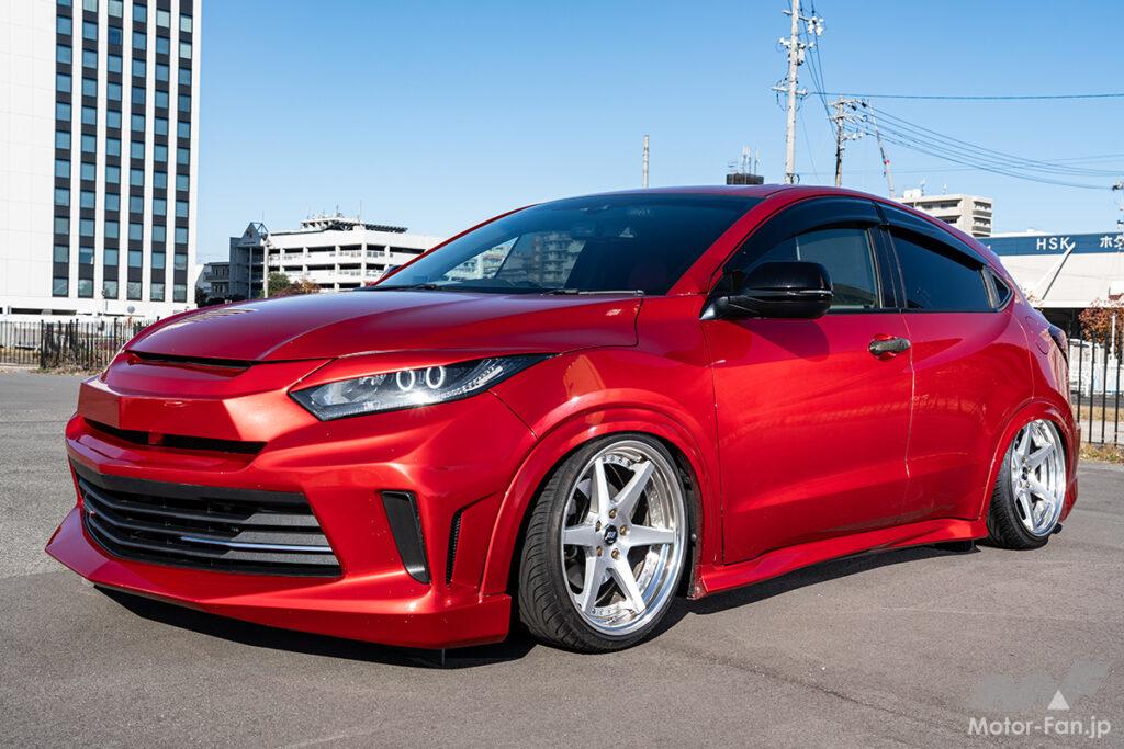 走りの良さとコダワリ満載のデザインに惹かれてヴェゼルを購入したという阿部さんですが、素の状態では飽き足らなかったのか大幅なエクステリアのリファインに着手!! なんと車種どころかメーカーまで異なる前後バンパーを組み合わせることで、名実ともに和洋折衷なイデタチのヴェゼルを爆誕させてしまったのです。