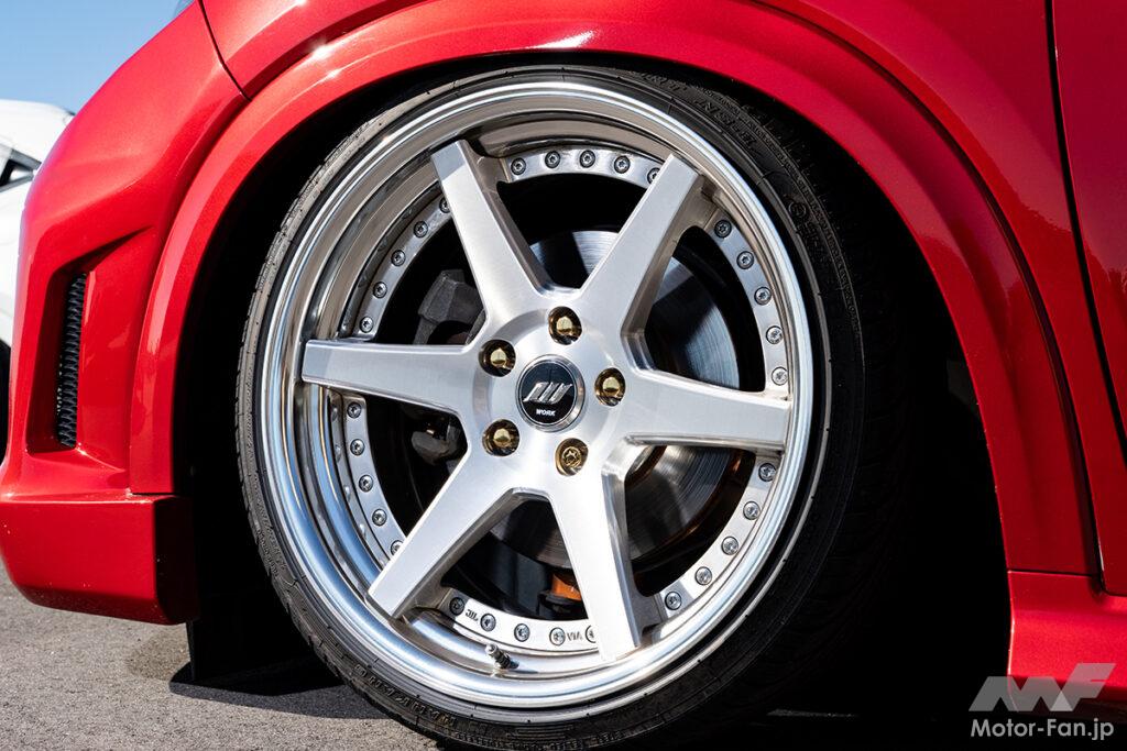 足回りにエアサスを組み込んでいるだけあり、リアフェンダーはタイヤどころかホイールにまでモロ被りするローフォルムを実現。圧倒的なカタマリ感を醸し出している。