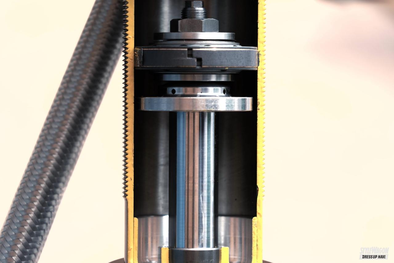 また、「ハイドロ・リバウンド・ストッパー(HRBS)」を搭載するのも大きな特徴。HRBSは、ダンパーが伸び切ったときの衝撃を柔らかくするもの。一般のダンパーでも縮みきったときの衝撃を和らげるものは多く見られるが、HRBSは逆の伸び切ったときの衝撃を小さくすることでクルマの挙動の安定、乗員へのショックや大きな音を伝えるのを防ぐ。結果として、耐久性の向上にも繋がる優れた機構なのだ。