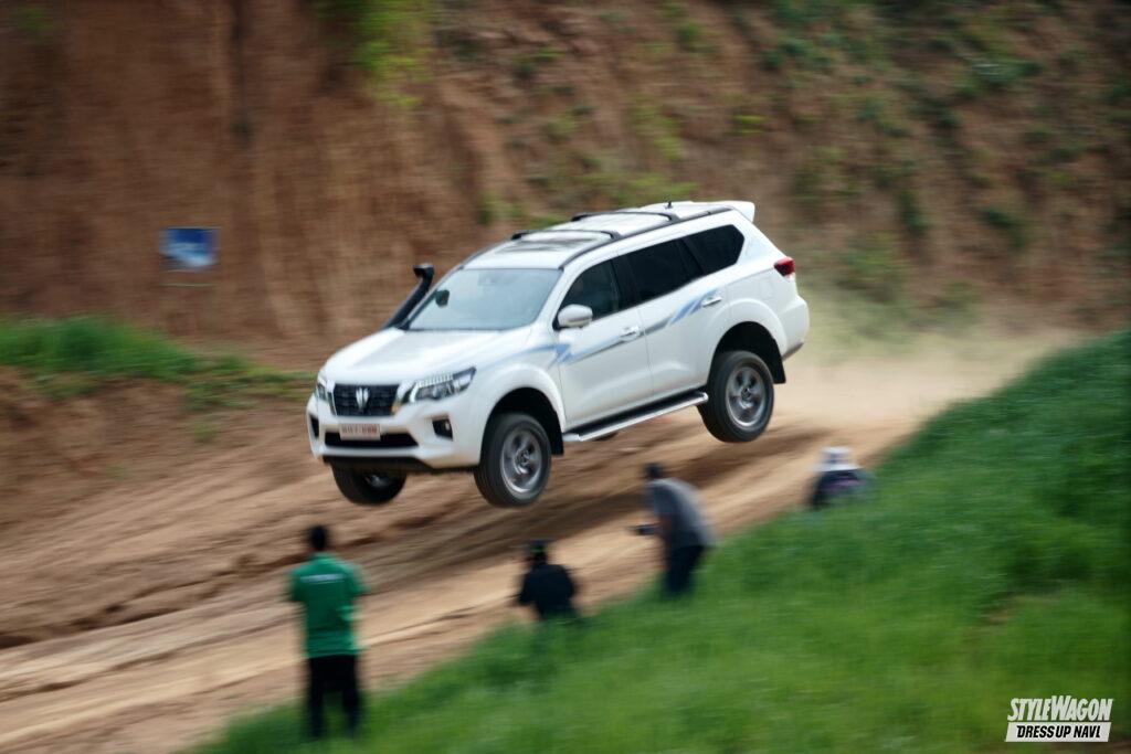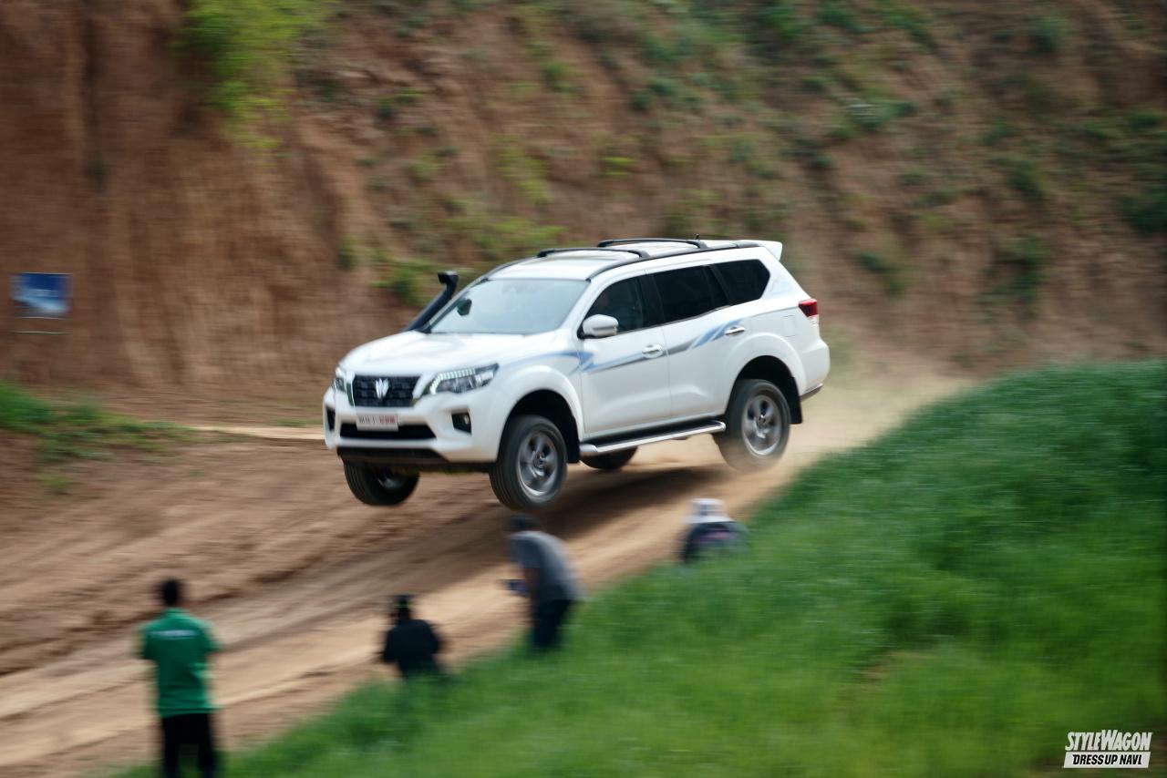 そんなパラディンにオフロードコースで試乗した。中国でもコロナの影響でアウトドアブームが起き、山間での楽しみの一つとして、自分のクルマでオフロードコースを走ることも流行しているのだそうだ。試乗コースも普段は一般ユーザーも思う存分走ることができるオフロードコースだった。
