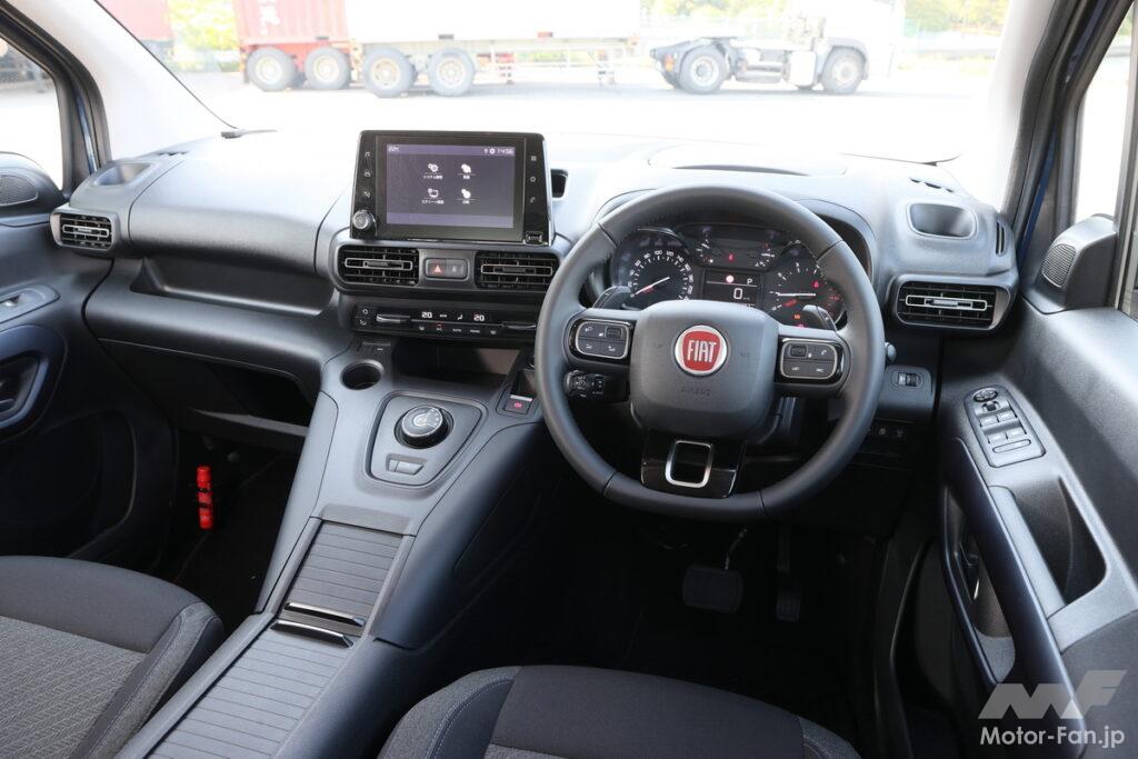 フロントフェイスは、他のフィアットとの共通性も強く感じさせる丸みを帯びたデザインで、フィアット流のファニーさも印象的。一方、バンパーやホイールはブラックでスタイリングを引き締めるとともに、道具感の演出にもひと役買っている。シトロエンやプジョーの上品なイメージも良いが、「気負わずに道具としてガンガン使うぞ!」というデザインは、若い人や、気持ちの若い人アクティブユーザーに支持されるのではないだろうか。