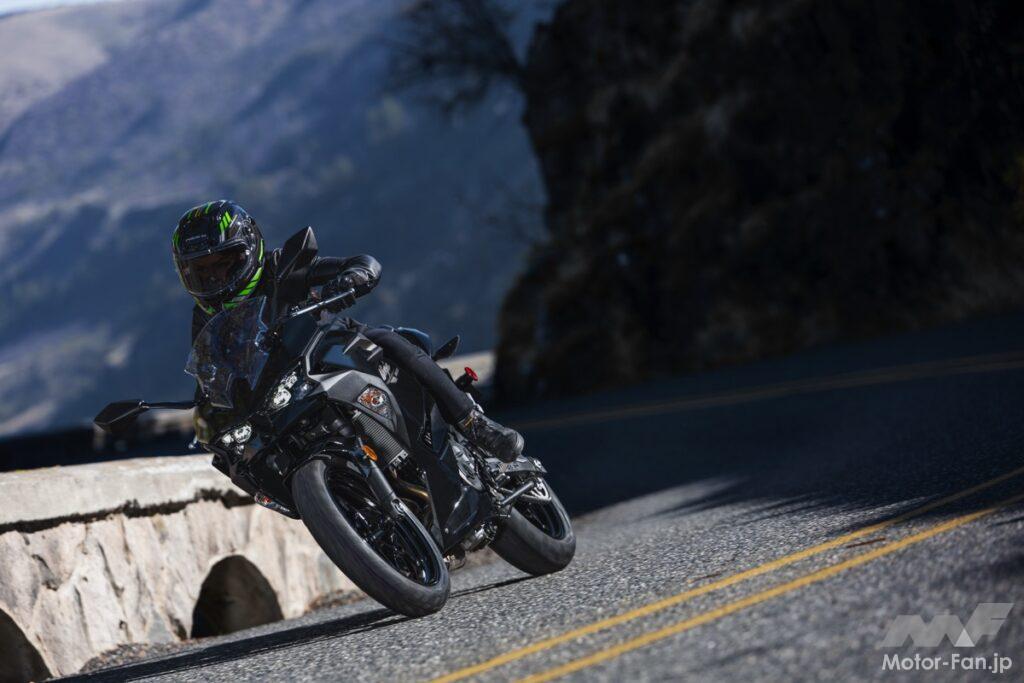 カワサキはライトスポーツクラスの新たな中核として、「Ninja 500」を日本市場に投入する。発売日は2月28日で、価格は89万1000(税込)。長年にわたり「Ninja 250」「Ninja 400」が築いてきた軽快さと扱いやすさという価値観を継承しながら、排気量を451cm³へと拡大。これにより、従来モデルでは一段上の回転域に委ねていた走行シーンを、より低い回転数で余裕をもってこなせる特性へと進化させた。