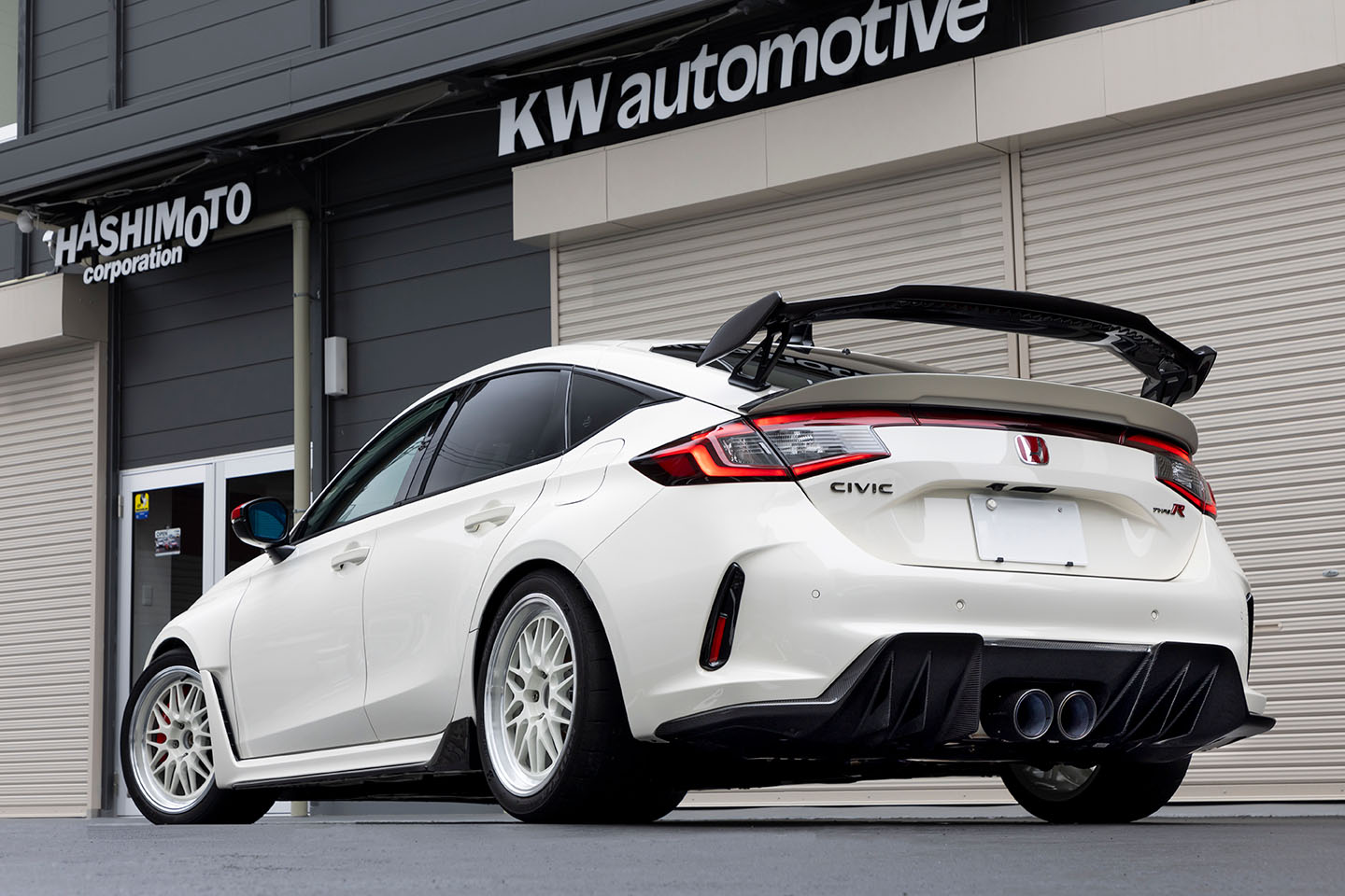 昨年、新たな愛車として迎えたFL5シビックタイプRには、コストパフォーマンスに優れたSTブランドのXTAを装着。さらに、ハイグリップラジアルでの本格的なサーキット走行を見据え、次のステップとしてKWのV3クラブスポーツを投入する予定だという。