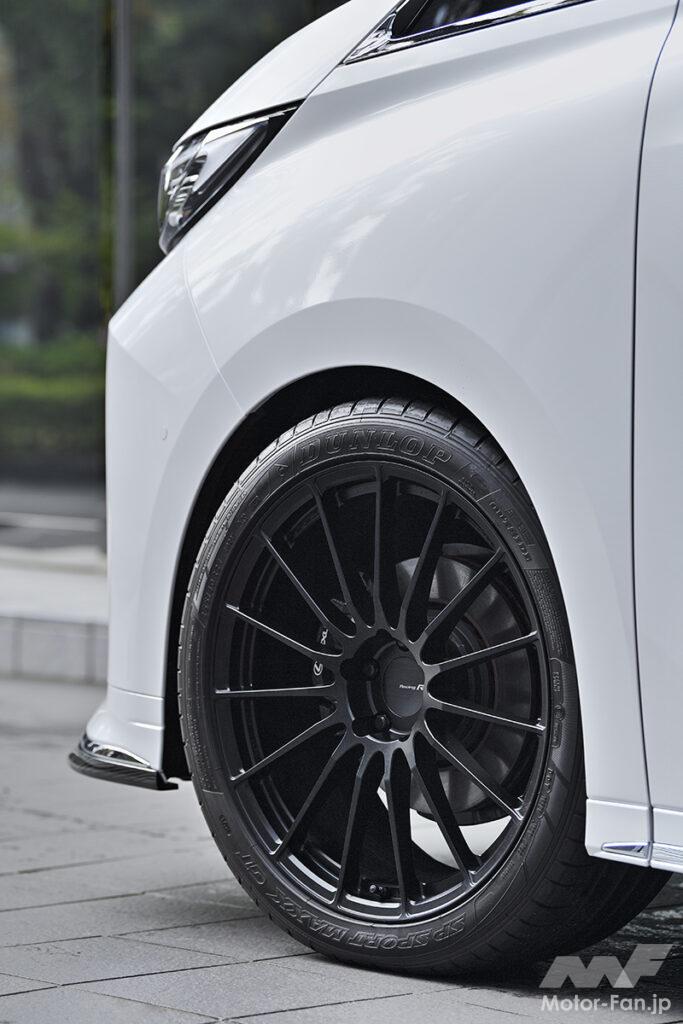 さらなる乗り心地を追求した新車高調『ダンパーZZ-R L』にも注目! 下げ幅は控え目だが、ローダウン+21インチの大径ホイール装着と、条件が厳しくなっているにもかかわらず、「純正か!?」と思わせる乗り味だったのだ。外観も乗り味もとにかく上級。LMに相応しいアイテム群と断言できる。