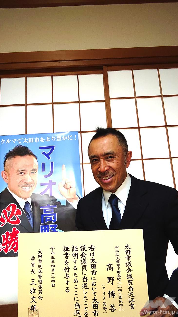 4月23日の投開票日には太田市民以外のスバリストも注目していたが、1479票を獲得し見事当選!晴れてマリオ高野議員となった当選後も、ご本人は「スバリストを支持基盤とした初の議員!」というほどだ。