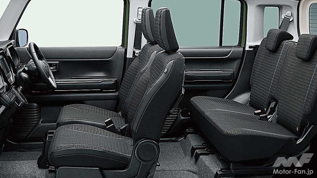 ハードウェアはハスラーとまったく同じなので、性能や使い勝手も同等。マイルドハイブリッドシステムと組み合わせたパワーユニットは、クラストップの低燃費を実現する。ワゴンR譲りの多様な使い勝手も同様で、助手席の折りたたみ機構や後席のスライド機構、ダイブダウン格納機構は継承する。4WD車には様々な路面に対応するスノーモード、グリップコントロール、ヒルディセントコントロールが装備される。