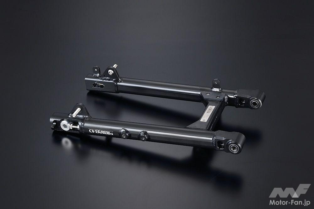 エンド部に虹色の焼き色を施したチタンサイレンサーは300mmというカブ系にしてはショートなサイズに設定し、全体のシルエットをスタイリッシュに演出。 スイングアームは純正のタンデムステップに対応。