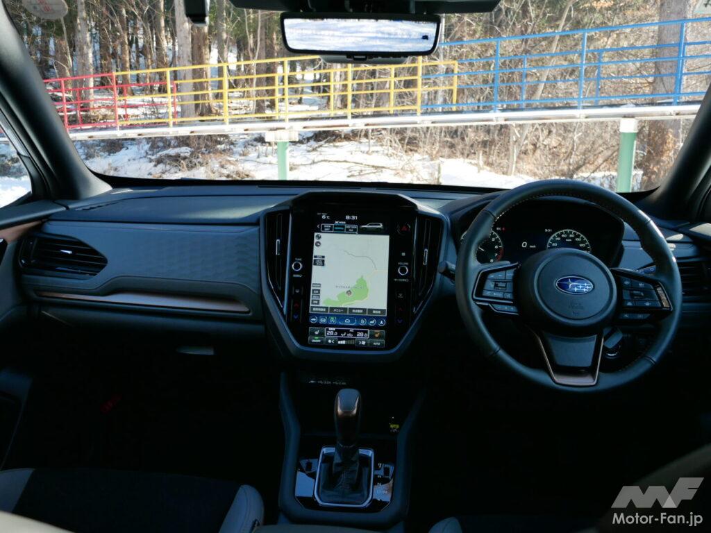 シートやハンドル位置を調整することでドライビングポジションは合わせやすく、視界も良好。リラックスして初ドライブを楽しめそうだ。もっとも、こうした運転姿勢の取りやすさはスバル車の伝統的な特徴であり、想定通り。
