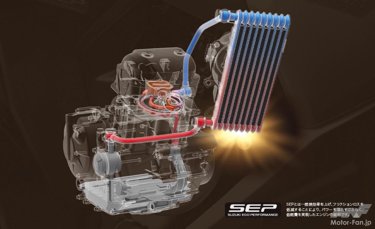 最高出力は19kW(9,300rpm)、最大トルクは22Nm(7,300rpm)を発揮し、市街地からワインディングロードまで幅広いシーンでの走行を快適にする。燃費性能も優れており、国土交通省届出の定地燃費値は44.5km/Lを記録。経済性と走行性能を両立したエンジンとなっている。