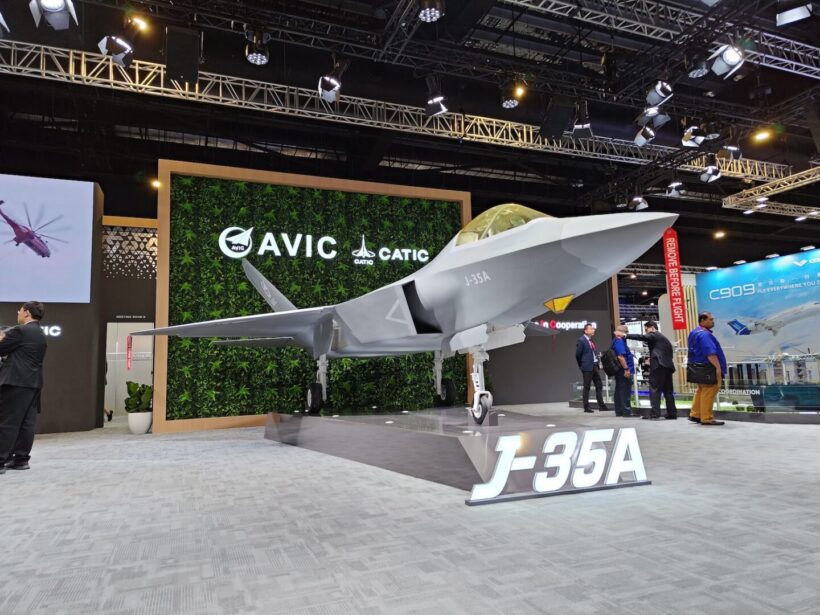 一方で屋内展示エリアは国際的な商談の場だ。欧米を中心にさまざまな国と地域から1000社以上の企業が出展した。今回目立っていたのが中国勢の勢いだ。軍用航空機メーカーAVIC(中国航空工業集団)は、最新鋭のステルス戦闘機J-35Aの巨大模型(1/2サイズ)を中心に大きなブースを展開した。J-35は輸出市場も狙った戦闘機だと言われている。その隣には同じく中国の民航機メーカーCOMAC(中国商用飛機)が、これまで巨大なブースを構える。
