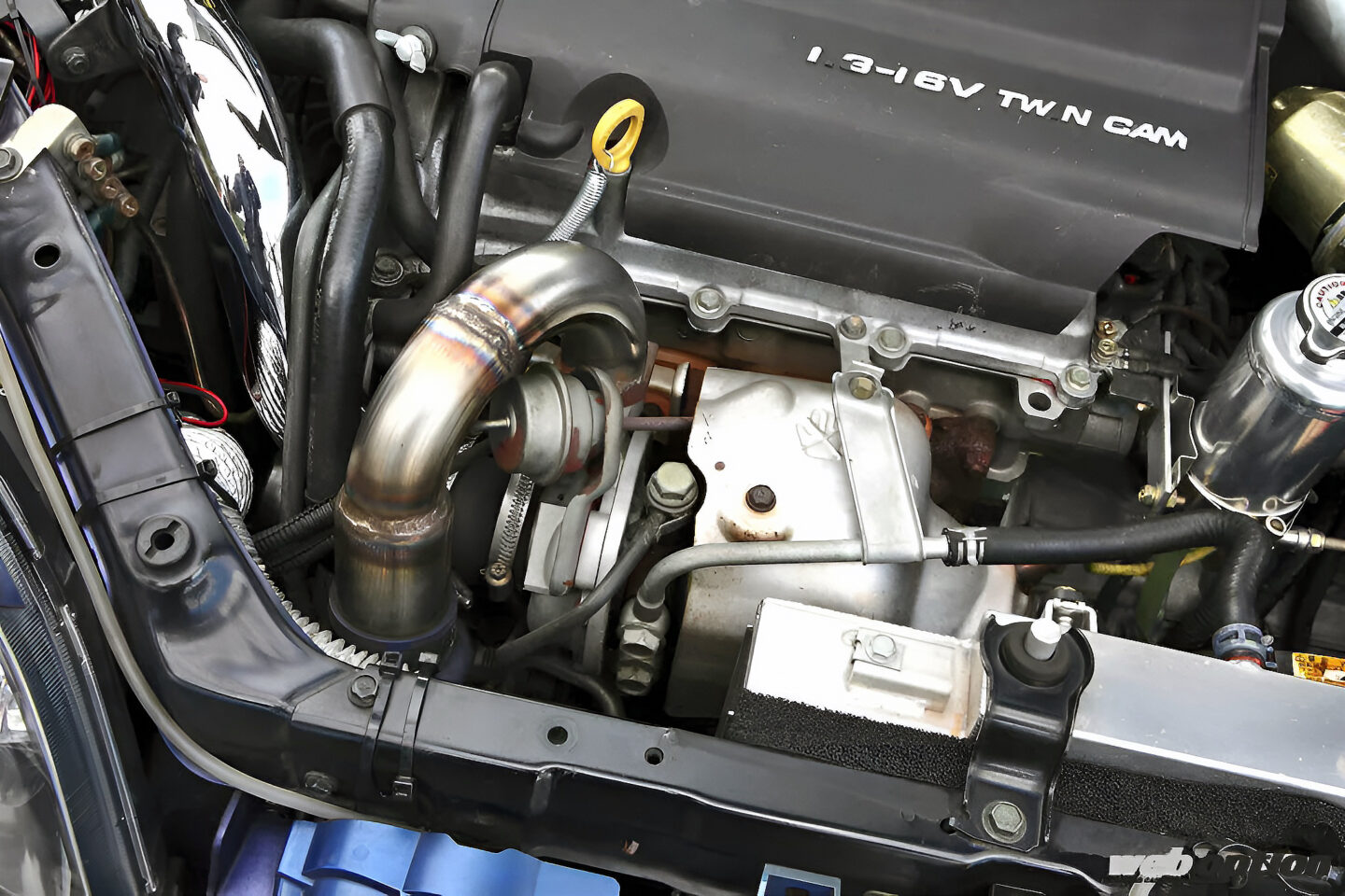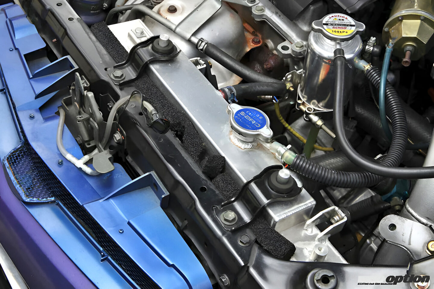 また、元々スポーツ走行を前提にしていない車種のため、バンパー開口部の少なさなどクーリングパーツの装着場所が厳しい傾向にある。そのため、オイルクーラーはインナーフェンダーに加工を施すことで冷却効率を引き上げている。
