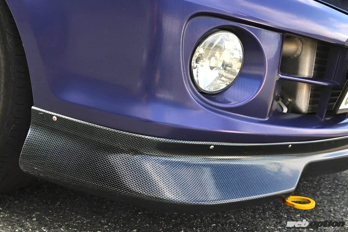 ちなみに、適合パーツがないという部分はエクステリアパーツも同様なのだが、その辺りはオーナーのDIY魂でカバー。エアロに関しては、リップスポイラーやサイドステップといったボトム部をカーボンシートでコーディネイト。前置きインタークーラーで不要となったインテーク付きボンネットはNAモデルへと変更することで、オリジナリティを出してきた。