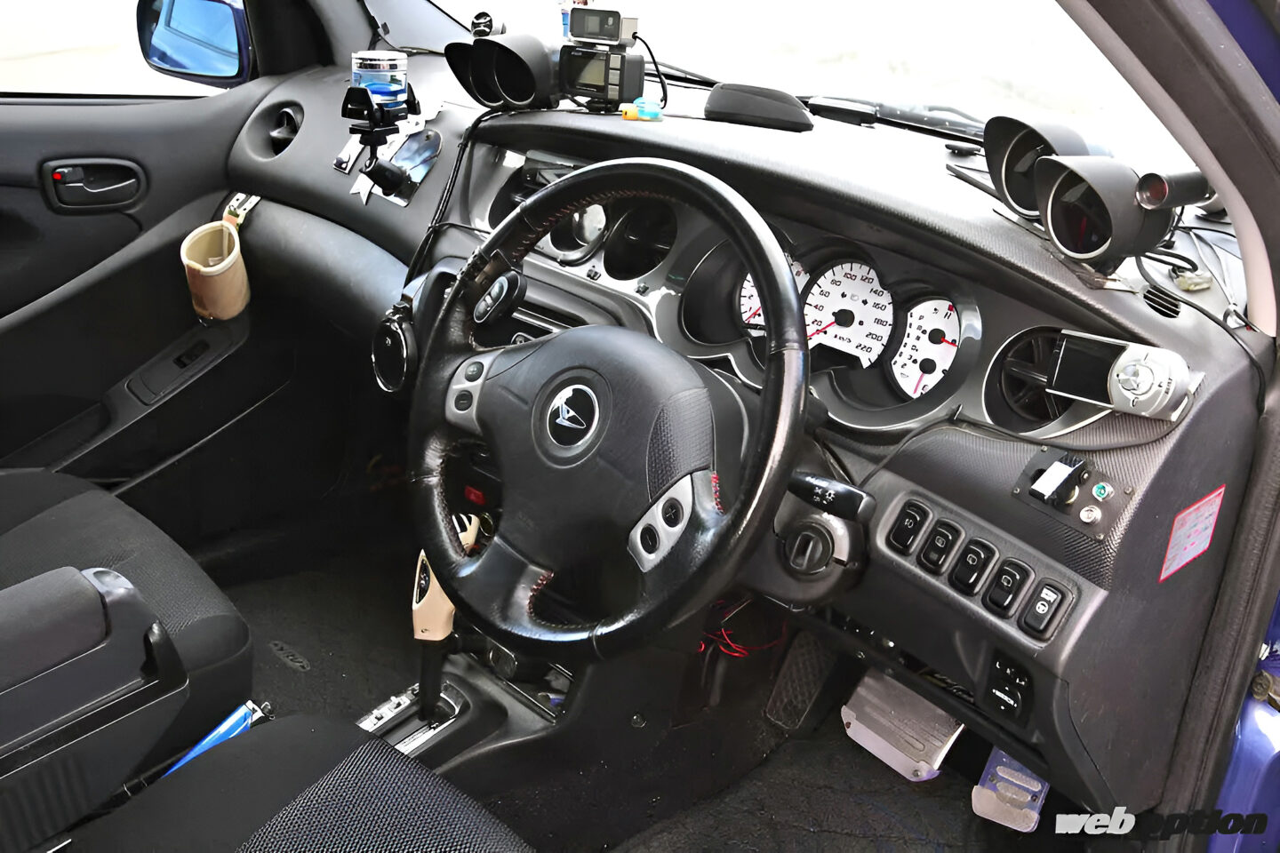 足回りのチューニングも苦労したポイント。ダウンサスはラインナップされているが、車高調となると設定は皆無。幸い兄弟車であるストーリアX4はラリーなどで需要があったため、Dスポーツのストーリア用車高調をベースにバネレートのみYRVに合わせてリセッティングしている。