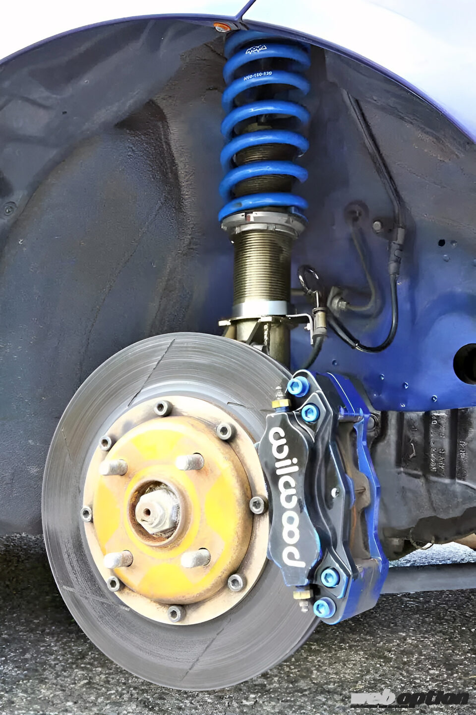 また、フットブレーキを多用するAT、そして快適装備満載のストリート仕様であることを考慮し、フロントブレーキキャリパーにはウィルウッド製4ポットをチョイス。システム的にコンパクトなので、16インチホイールでもマッチングは可能なのだ。