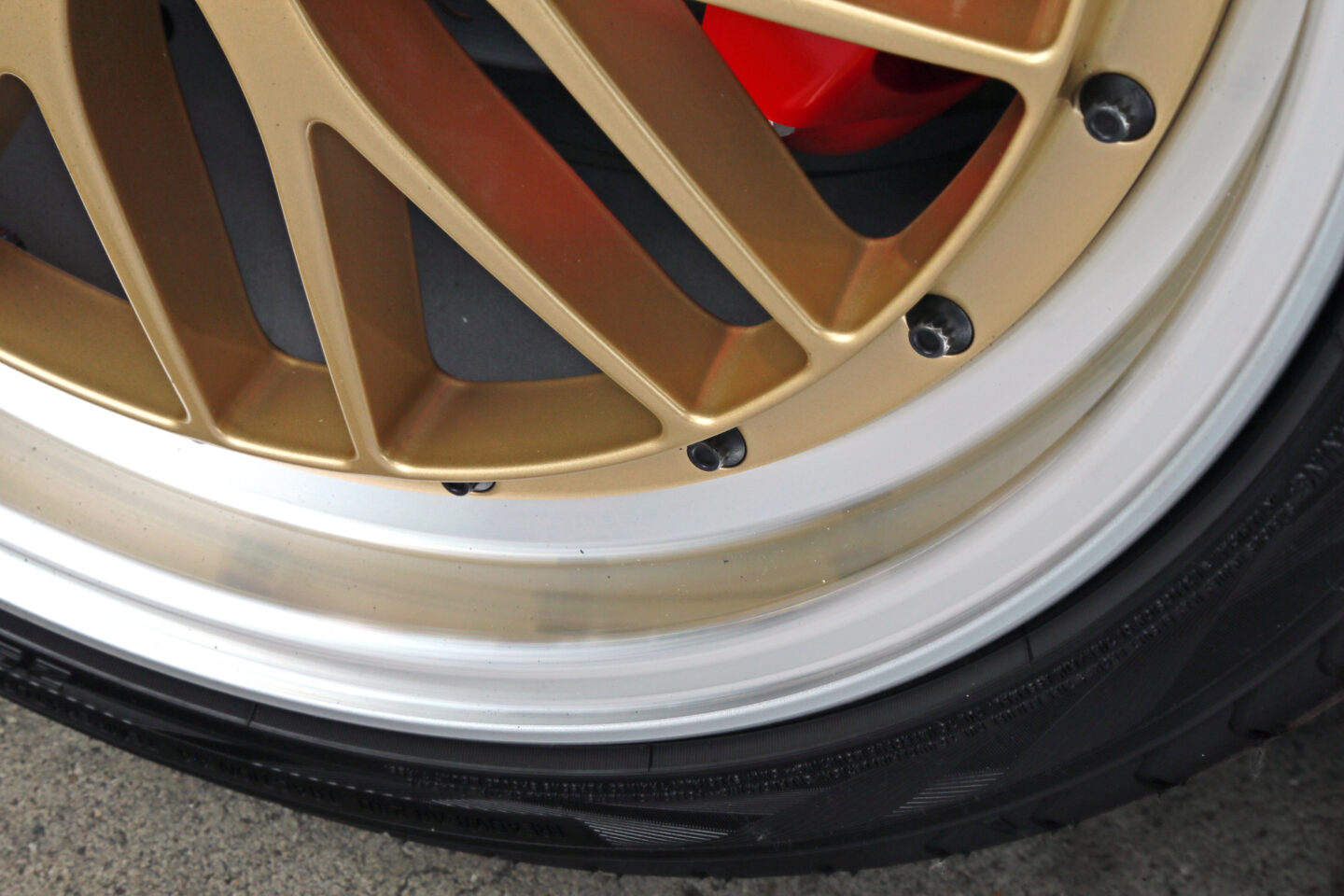ピアスボルトに刻まれるBBSロゴは、本物であることの証。さらにリム部には虹色の輝きを放つダイヤカット処理が施されるなど、細部に至るまで妥協のない作り込みがなされている。