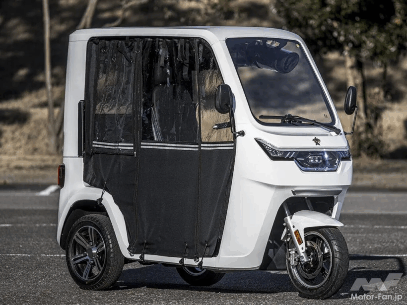 バイクイベント 「ミニカー」はドア付OKでエアコン装備だが1人乗り限定。「側車付軽二輪車」はドアNGだが3人乗りOK。アナタならどっちを選ぶ?【写真・4枚目】 タイの三輪タクシー「トゥクトゥク」を踏襲した電動の側車付軽二輪。乗車定員は前1名(運転者)+リアシート2名の合計3名。同車は家電量販店の「ヨドバシカメラ」で発売中! この画像の記事を読む
