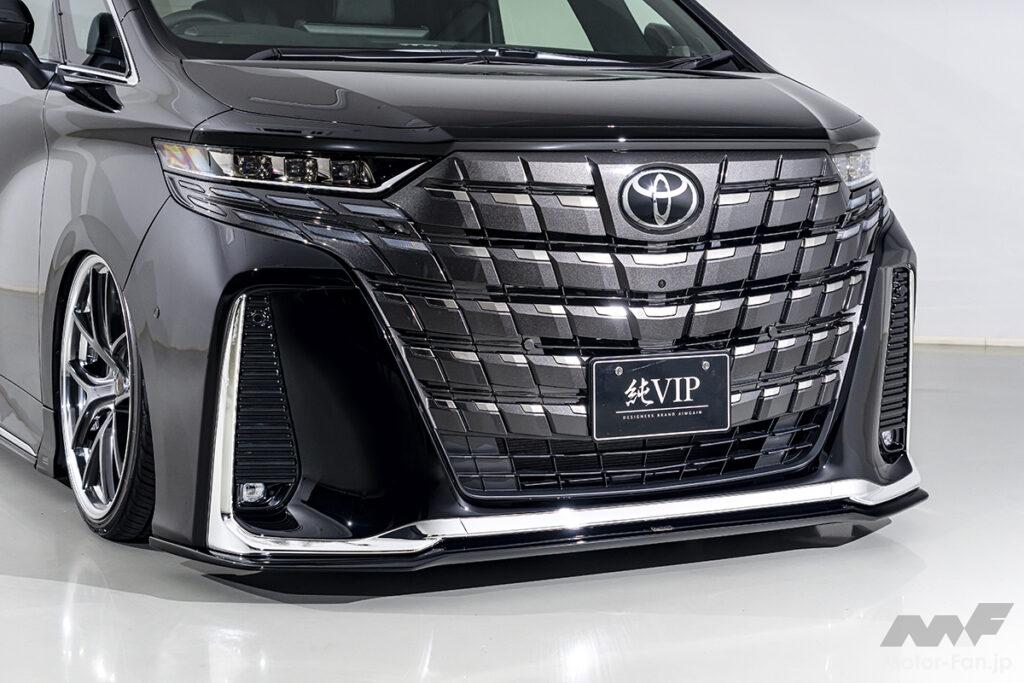 さすがはスタイリッシュな現行車と言える40アルファード。フロントバンパーは純正の時点ですでに完成度が高く、面積の大半を占めるフロントグリルは押し出し感の極み。だから市場に出回っているエアロのほとんどがハーフやリップタイプ。エイムゲインも小振りなアンダーリップを用意しているが、新たな挑戦として純VIPブランドから40アルファード用のバンパーエアロをリリース。他と同じ仕様では満足できないユーザーのニーズに応えてくれた。
