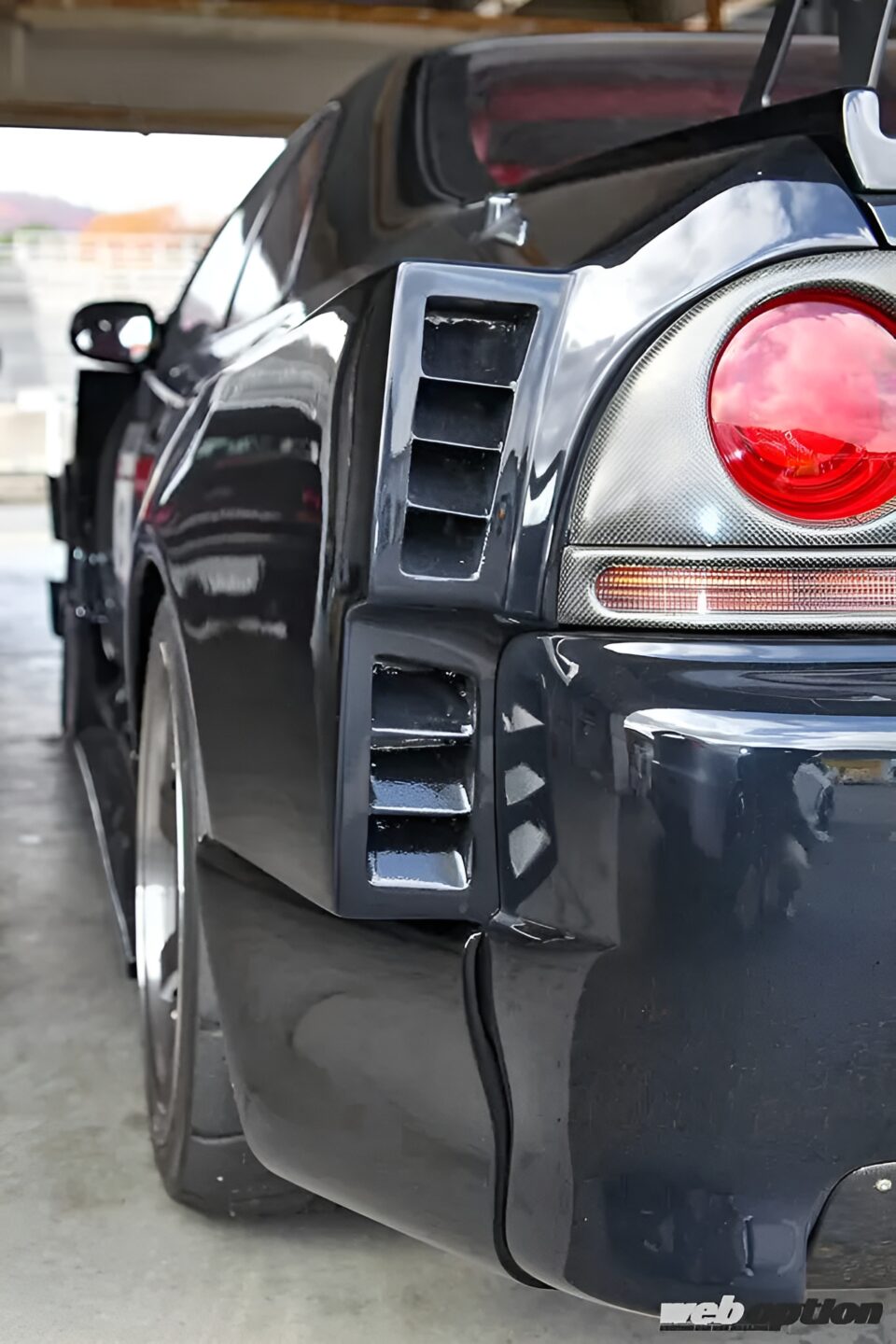 関西の名門チューナー“トライアル”がチューニングを担当するこのBCNR33は、その個性的なルックスから仲間内の間で「バットモービル」という愛称で親しまれているユーザーカーだ。