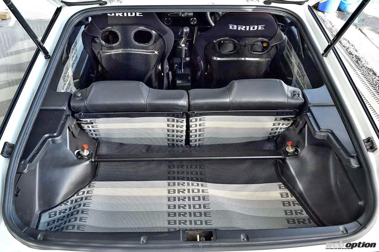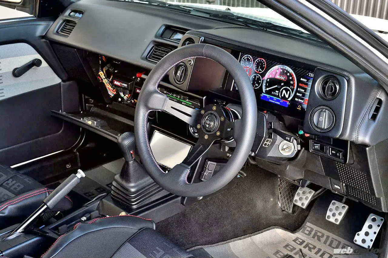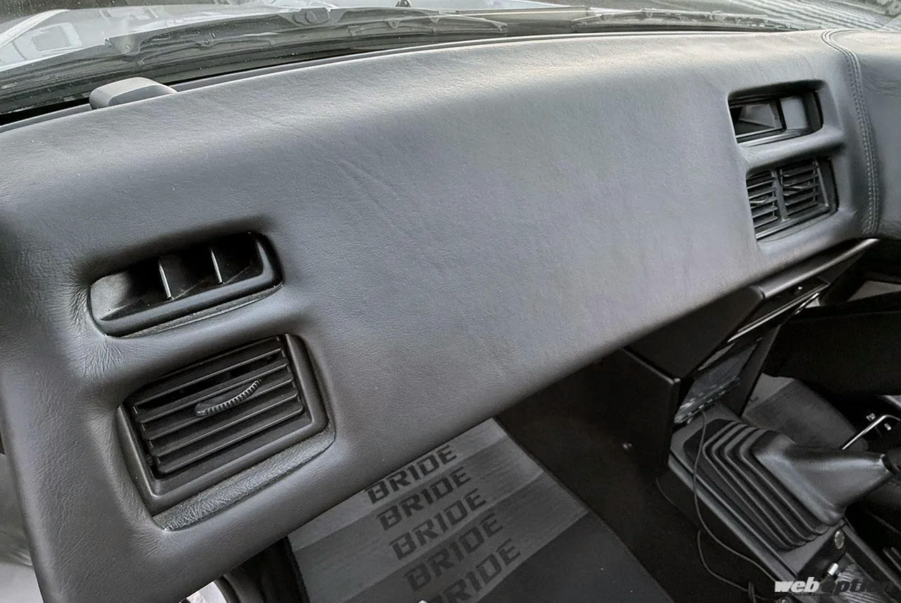 その他、内装はブリッドのストラディアIIIを中心に、全面をブリッド素材で張り替え。グローブボックス内にはMoTeCのユニットがすっきりと収まり、ダッシュにはレザーのカバーを追加。スマートで無駄のない仕上がりだ。