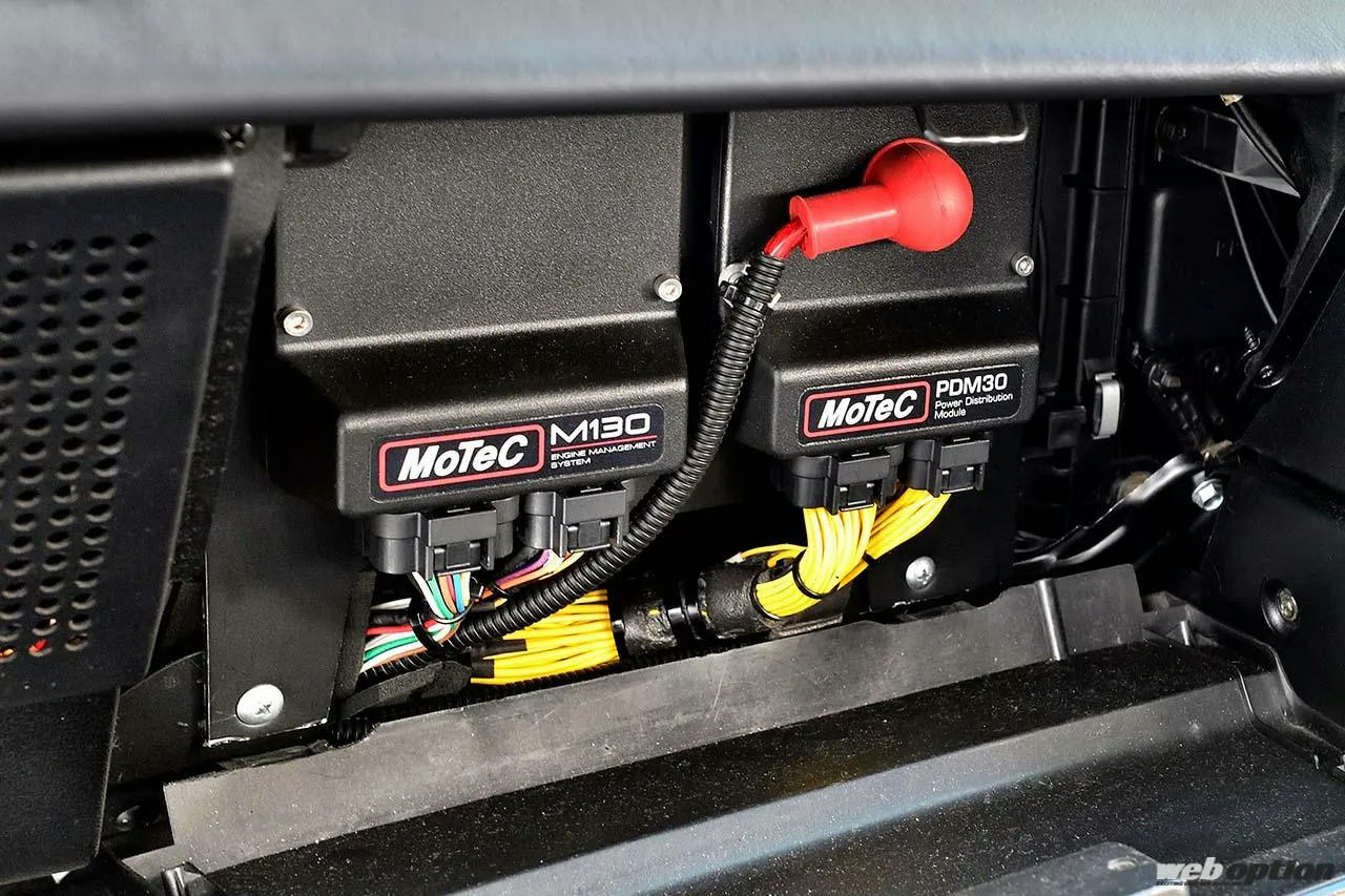 シャーシからエンジンまで、完全なリフレッシュ&アップデートを受けたこの車両だが、その中でも特に注目したいのが、MoTeCと周辺機器を組み合わせて完全に作り直されたという制御&電気系統。