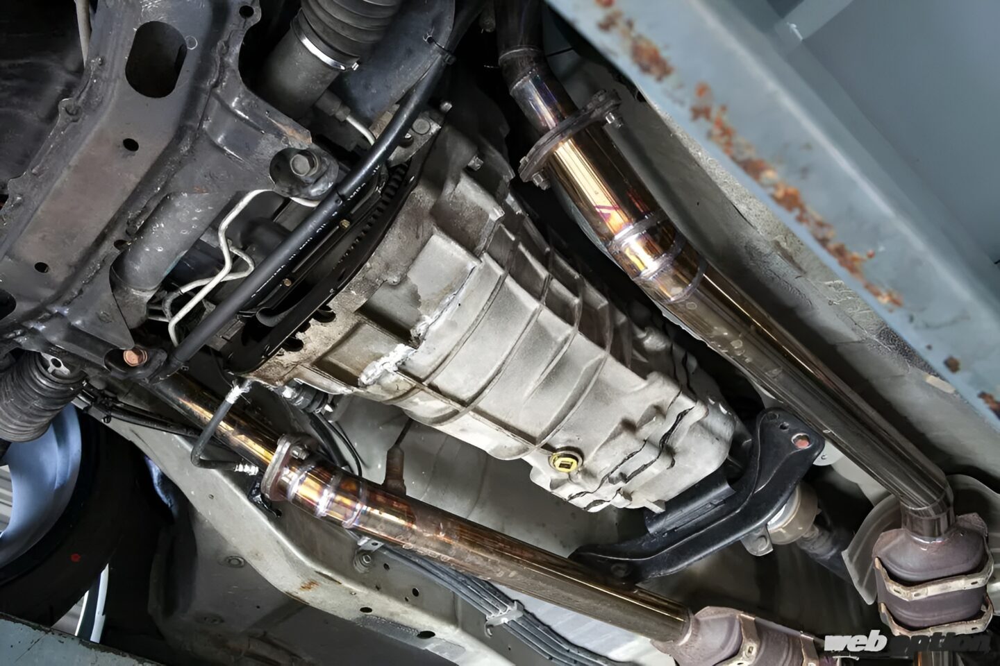 また、インフィニティQ45とその派生モデルのプレジデントに搭載されたVH45にはMTの設定はない。そこで、VH45のベルハウジングとER34のミッションケースを合体させることで5速MT化を実現した。