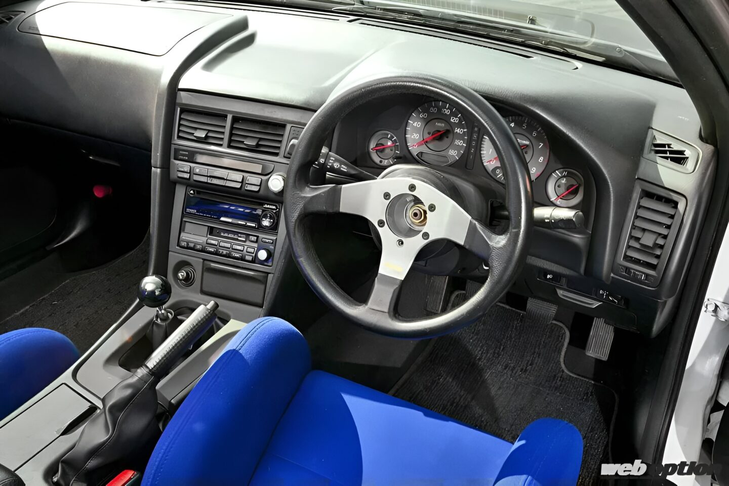 ただし、V8エンジン搭載による発熱量の増加に対処するため、ラジエターをER34用の2層式に変更しつつアルミ製シュラウドで覆って冷却性能を高めている。また、エンジンの高さも適正範囲。ボンネット裏のインシュレーターと干渉することもなく、これがストック状態と言っても気づかない気もする…。