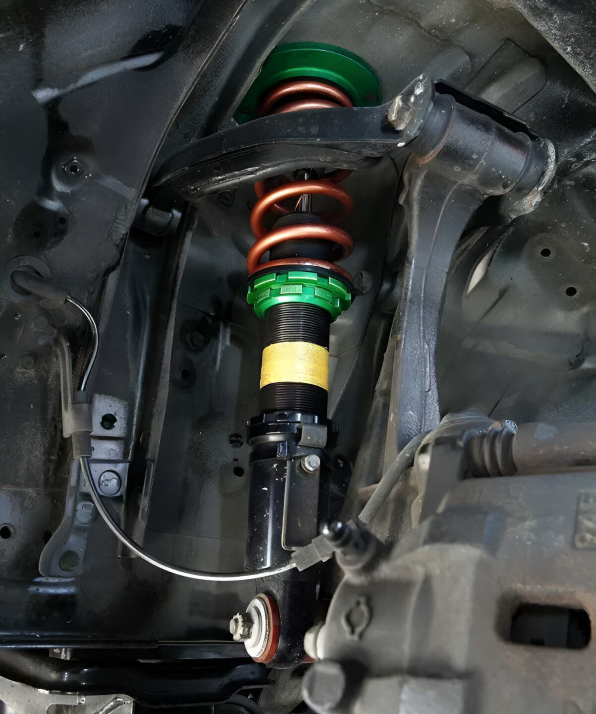一方のサスペンションは、DG-5とのコラボで誕生したユーラスオリジナルのフルタップ車高調を装備する。