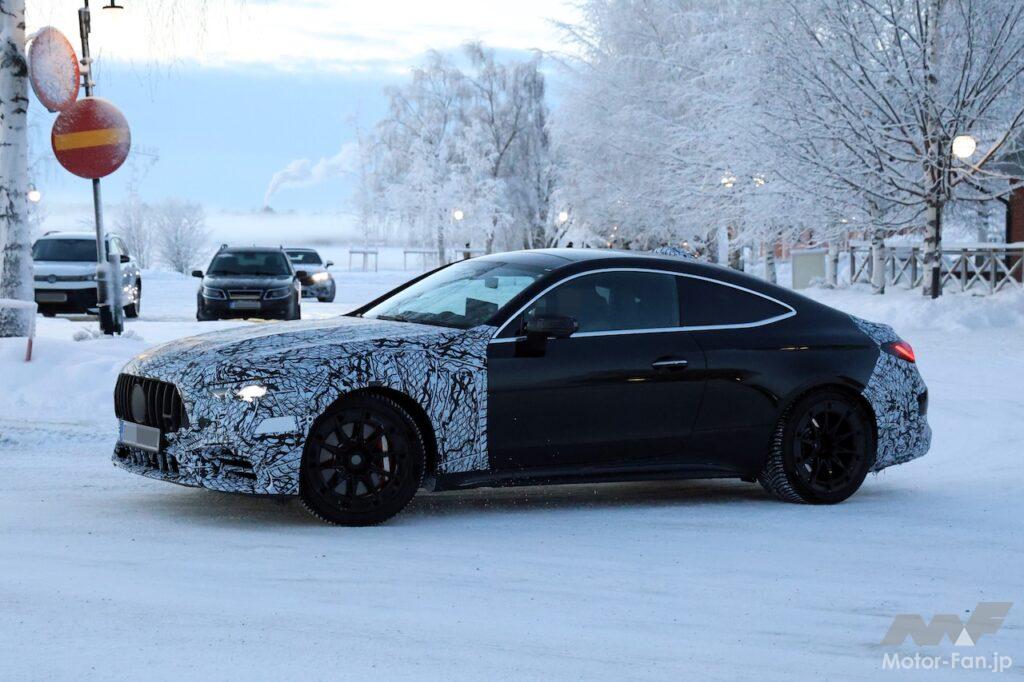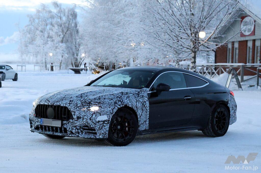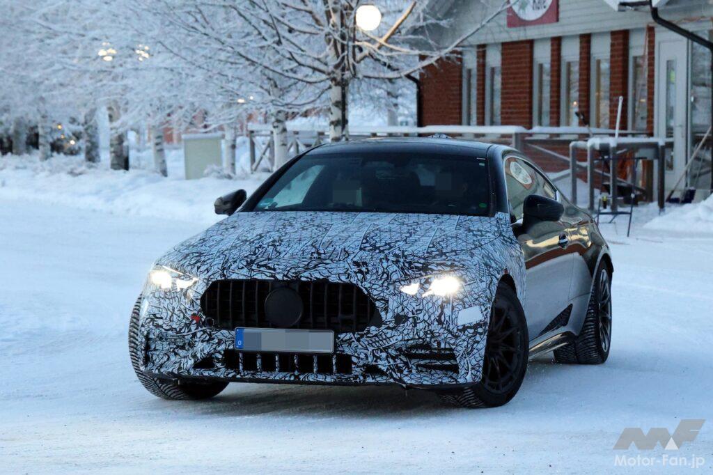 スクープ班のカメラが、メルセデス・ベンツCLEのフェイスリフト版が雪道テスト走行中の姿を捉えた。前回は標準モデルだったが、今回は、より高出力で、AMGらしいアグレッシブなスタイリングを持つメルセデスAMG CLE 63と思われる。